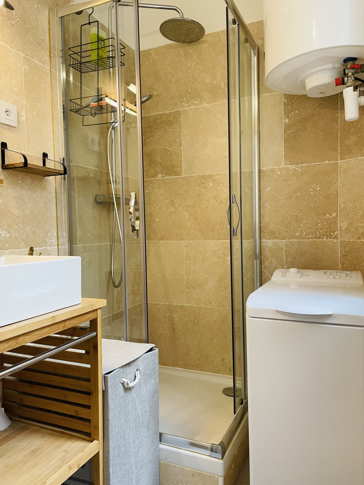 - Salle d’eau avec douche avec lave-linge et WC séparé