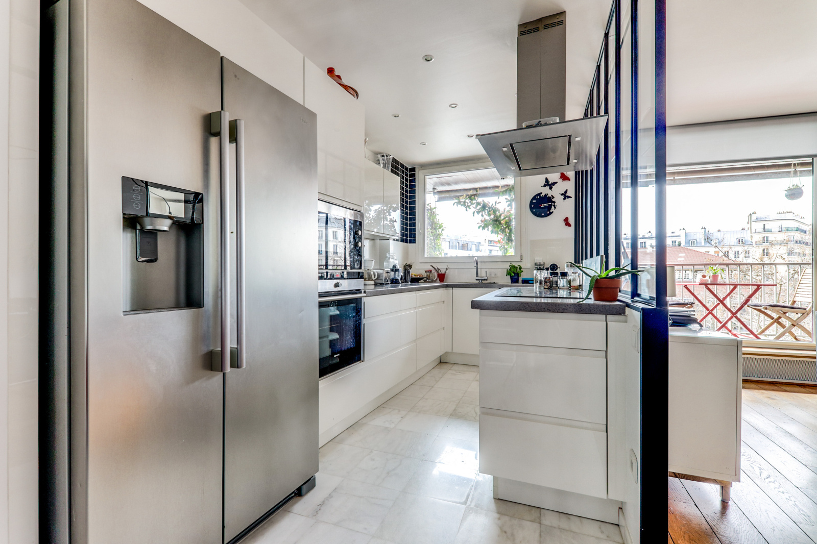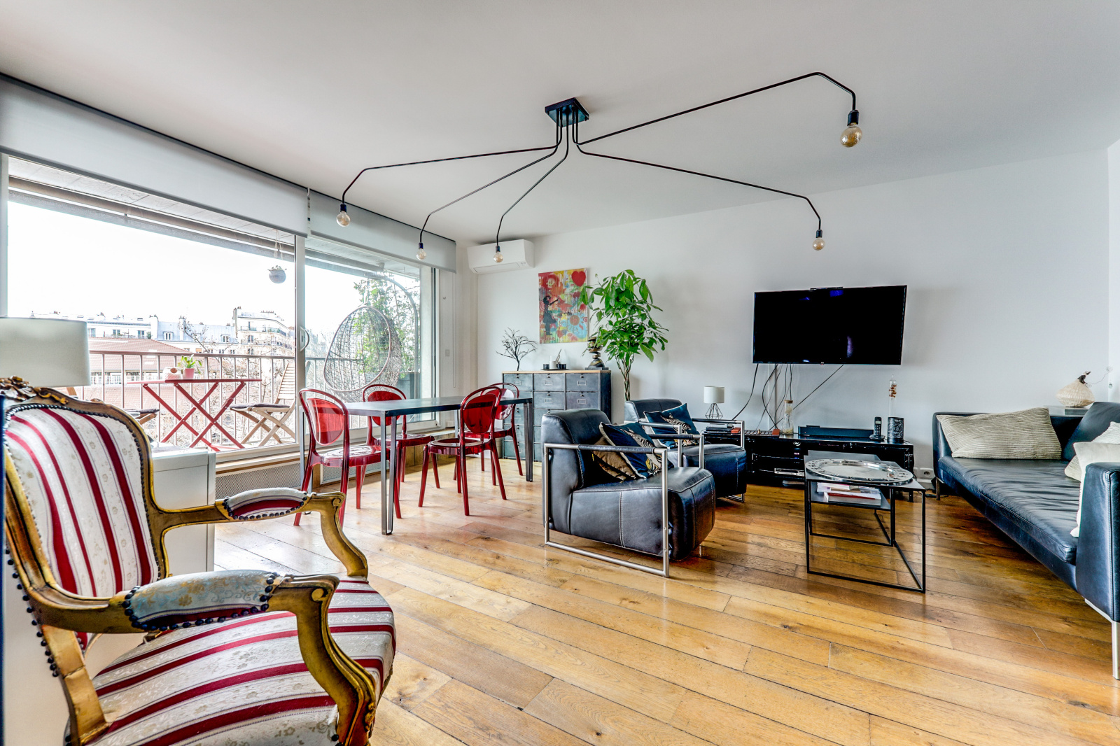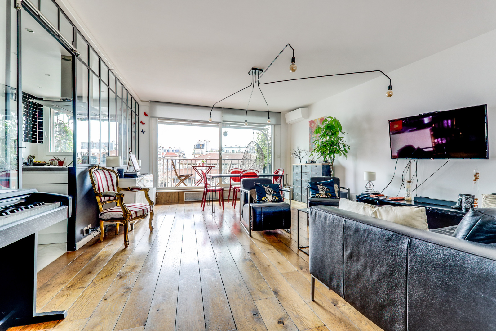 Le grand séjour avec cuisine ouverte est l'endroit idéal pour se détendre et profiter de la vue depuis le balcon surplombant la Place d'Aligre. La cuisine entièrement équipée vous permettra de préparer vos repas tout en appréciant l'atmosphère animée du marché.