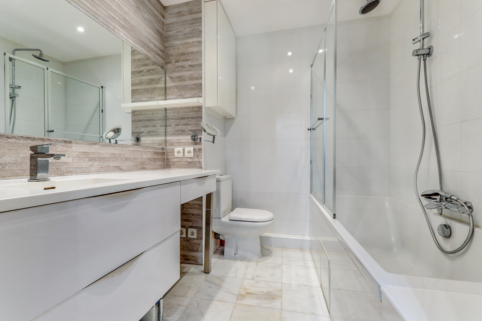 Vous trouverez deux salles de bains dans l'appartement, l'une avec une douche et l'autre avec une baignoire, offrant ainsi le choix entre une douche revigorante et un bain relaxant.