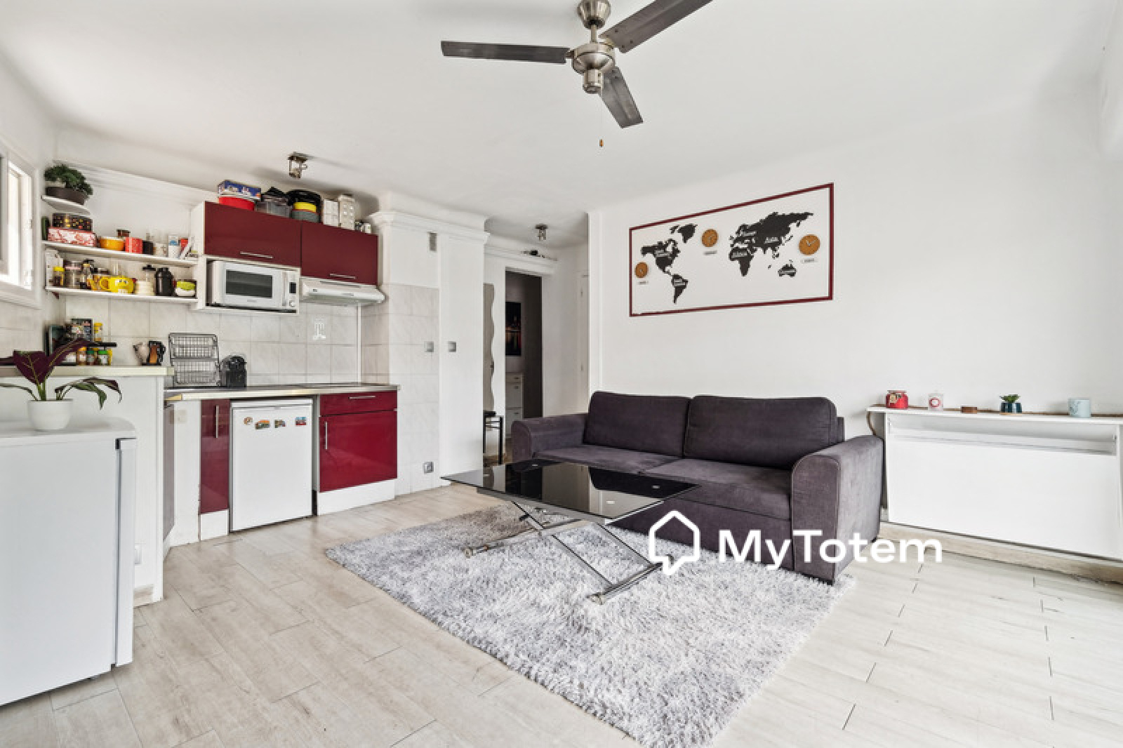 L'appartement se compose comme suit: entrée avec rangements, séjour avec cuisine ouverte, chambre, salle de bain avec wc.