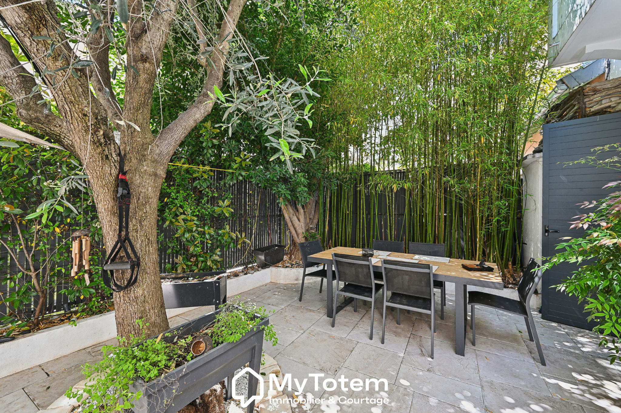 A 15 minutes du centre de Cannes, à proximité du Lycée Carnot, dans une impasse accessible avenue du Camp Long, très belle maison 6 pièces de 127,22 m² entièrement rénovée avec des matériaux de qualité.