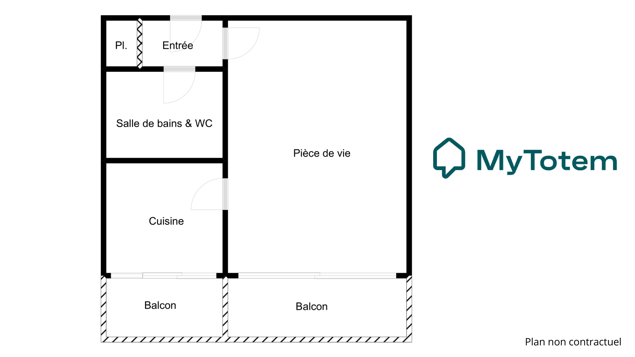 L’appartement se compose d’une entrée avec rangements intégrés, d’une pièce de vie de 23 m² ouvrant sur une première loggia de 4 m², permettant de profiter d’un agréable espace extérieur. La cuisine indépendante aménagée donne accès à un second extérieur d’environ 2 m². Une salle de bains avec wc complète l’ensemble.