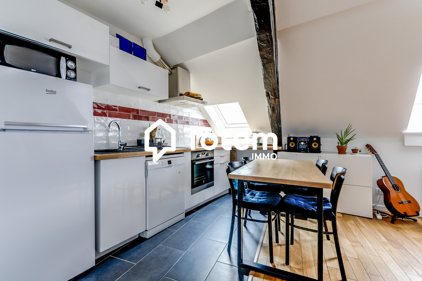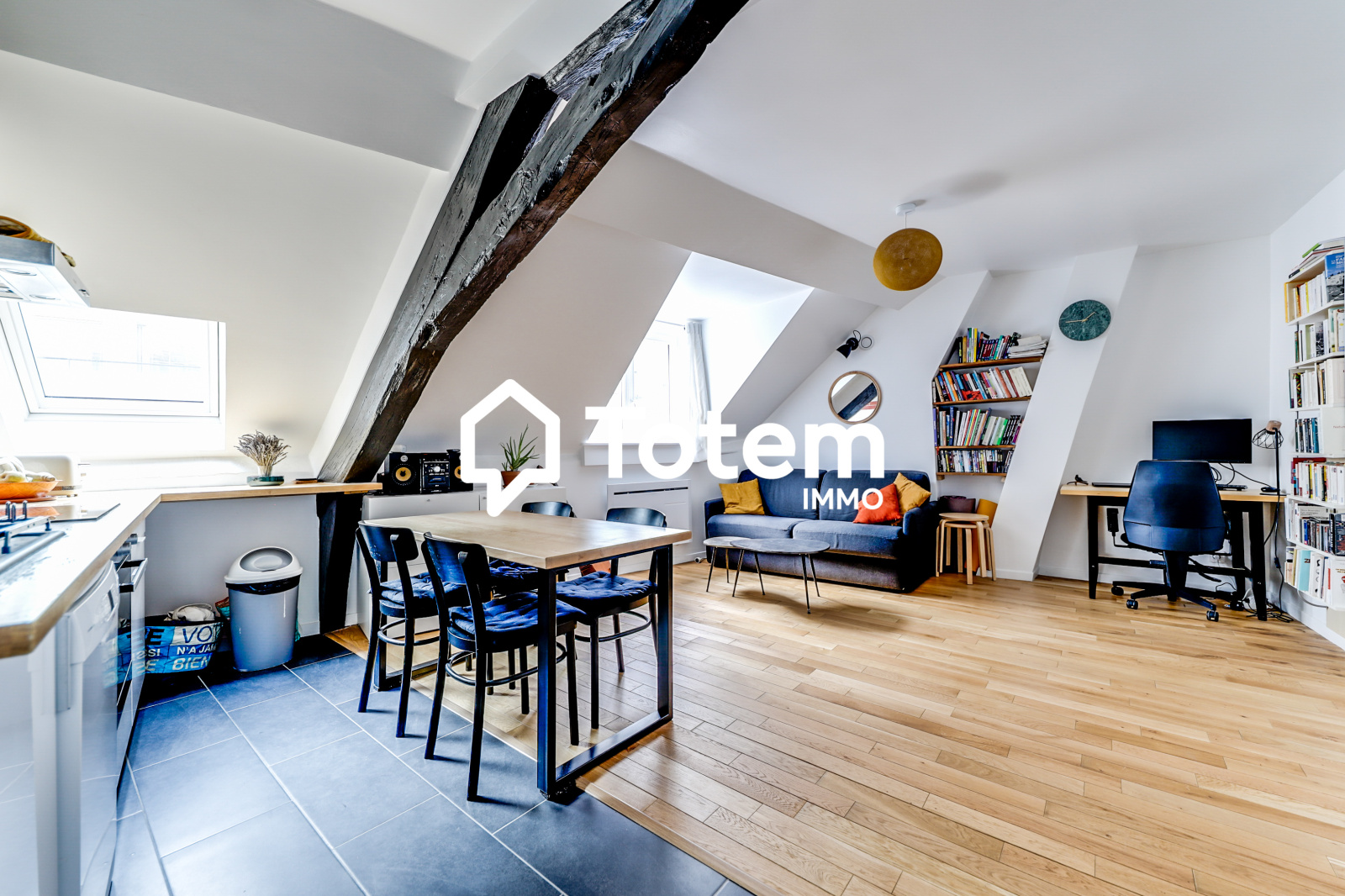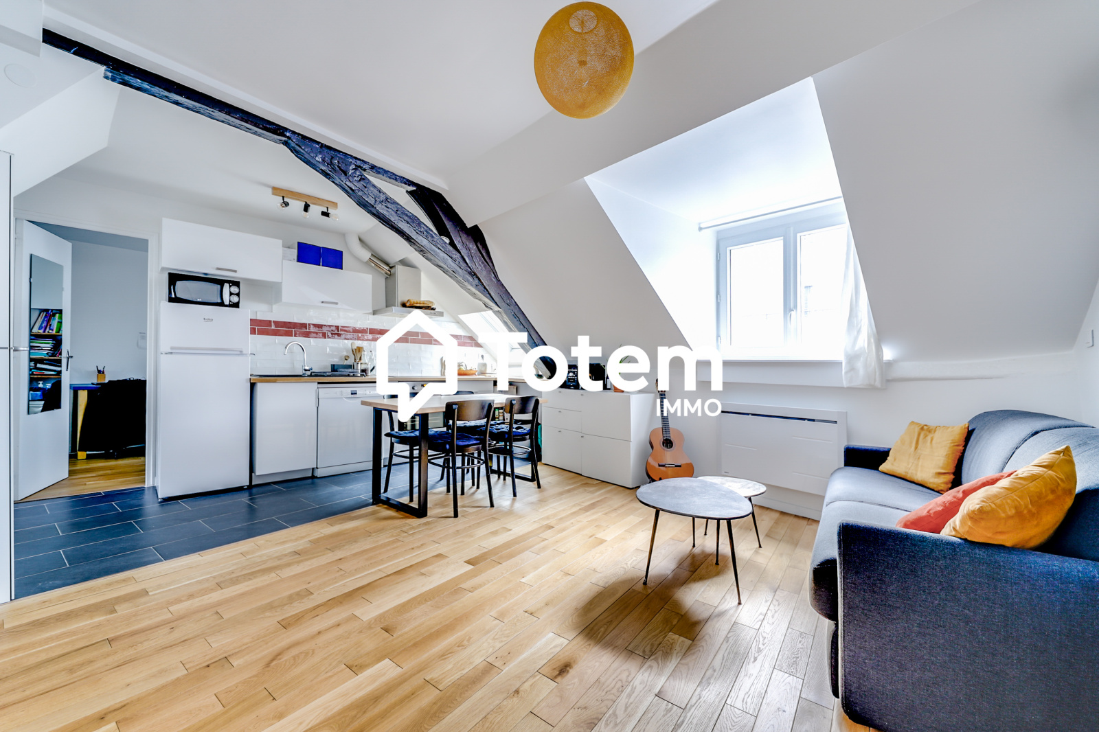 Dans un immeuble des années 1800, un appartement 2 pièces entièrement rénové de 46,89 m² (38,02 m² "loi carrez") au quatrième et dernier étage, l'appartement se compose comme suit : entrée, séjour avec cuisine ouverte aménagée et équipée, chambre, salle d'eau avec wc.