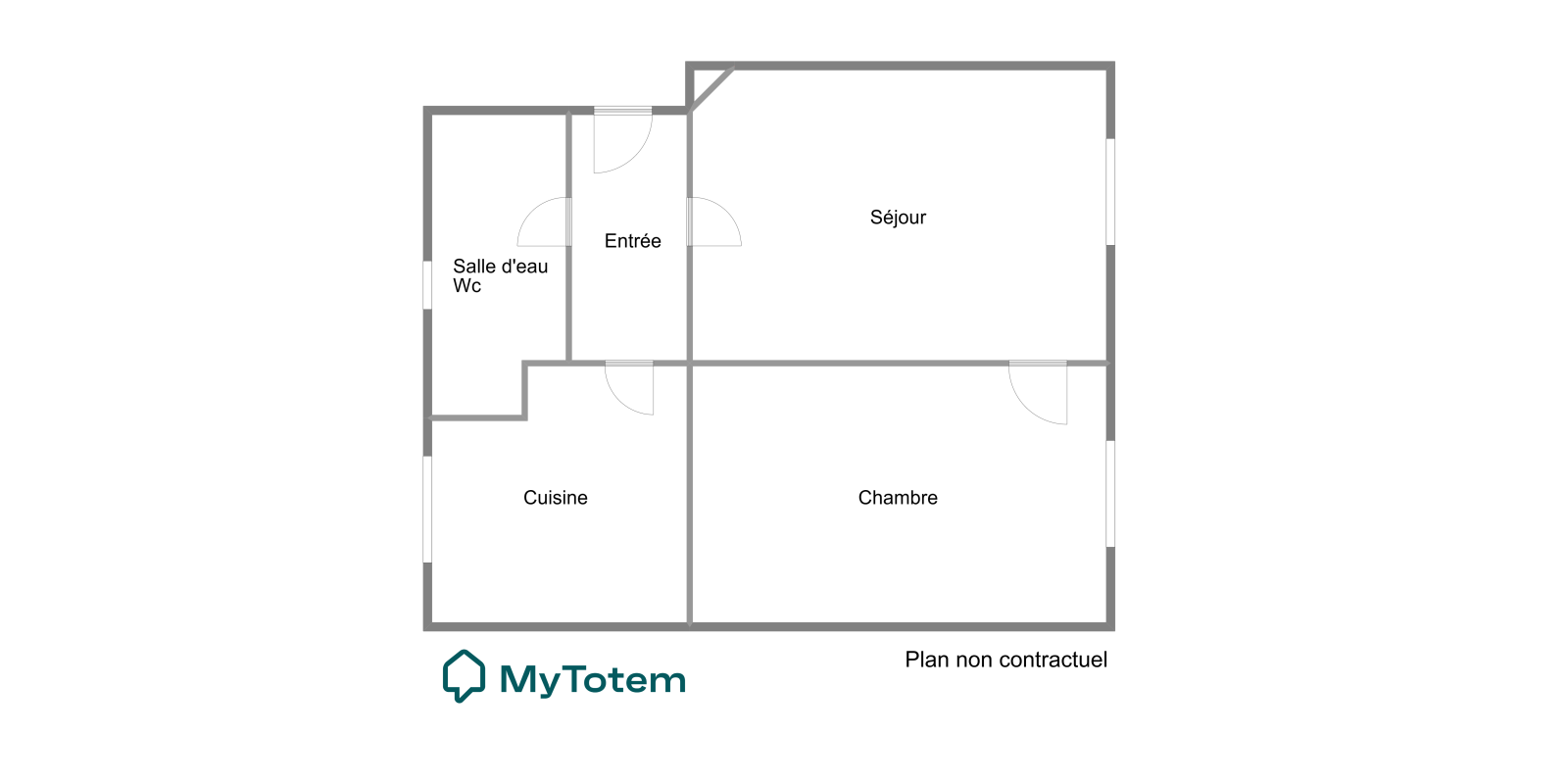 L'appartement se compose d'une entrée, un séjour avec cheminée, une cuisine spacieuse aménagée et équipée, une grande chambre, une salle d'eau avec wc.