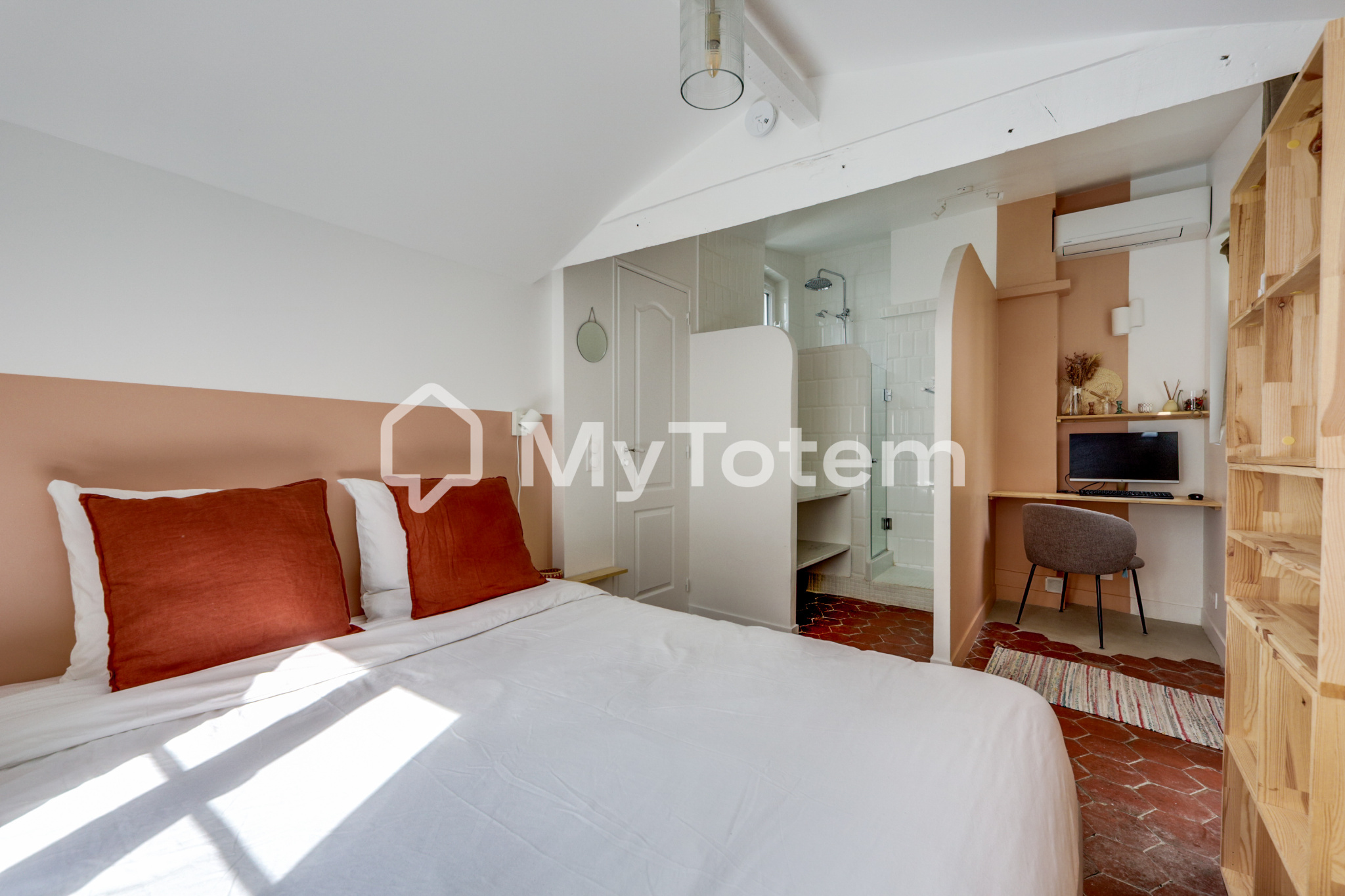 La chambre, calme et intimiste, s’ouvre sur une terrasse privative de 4,42 m², un atout rare dans ce secteur, parfait pour savourer un café au soleil ou un dîner d’été en toute tranquillité. Une salle d’eau moderne ainsi que des toilettes séparées viennent compléter le confort de ce bien.