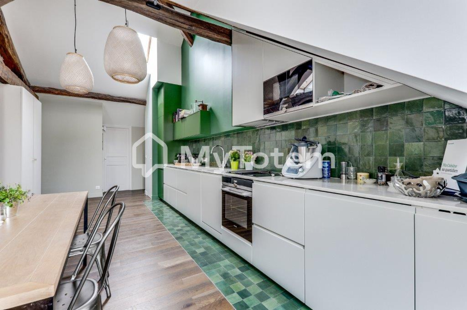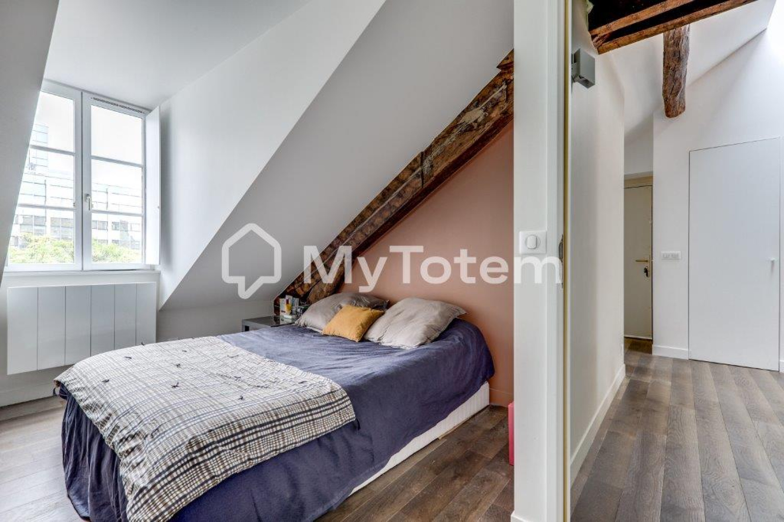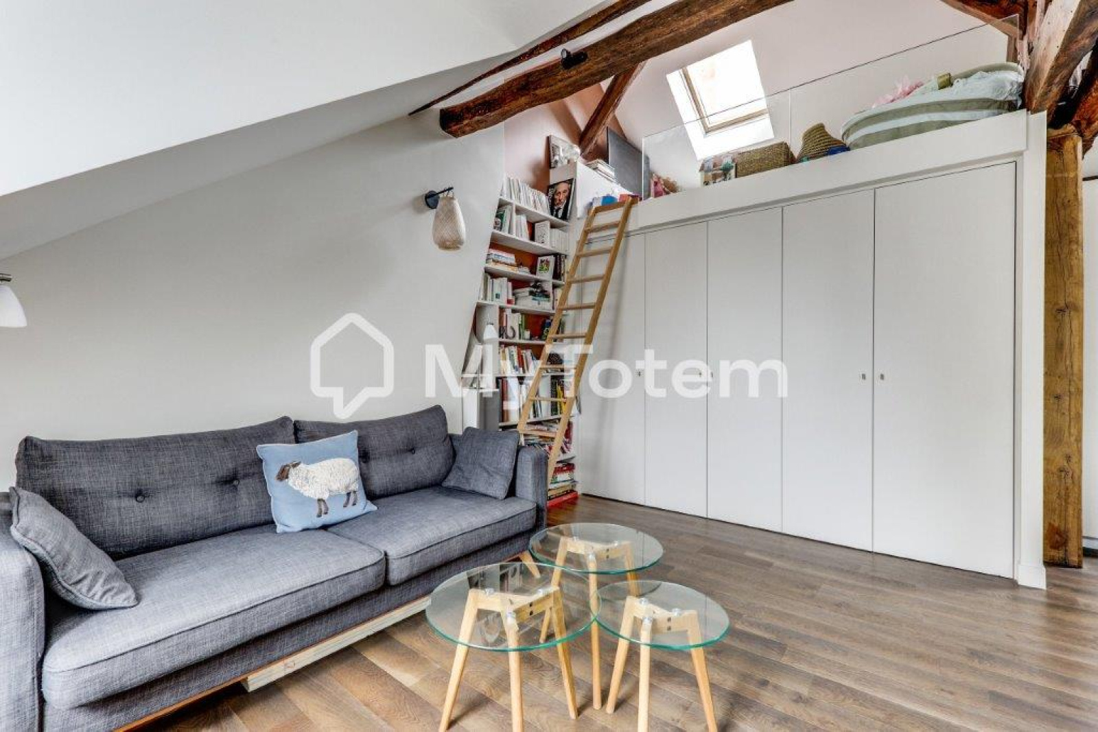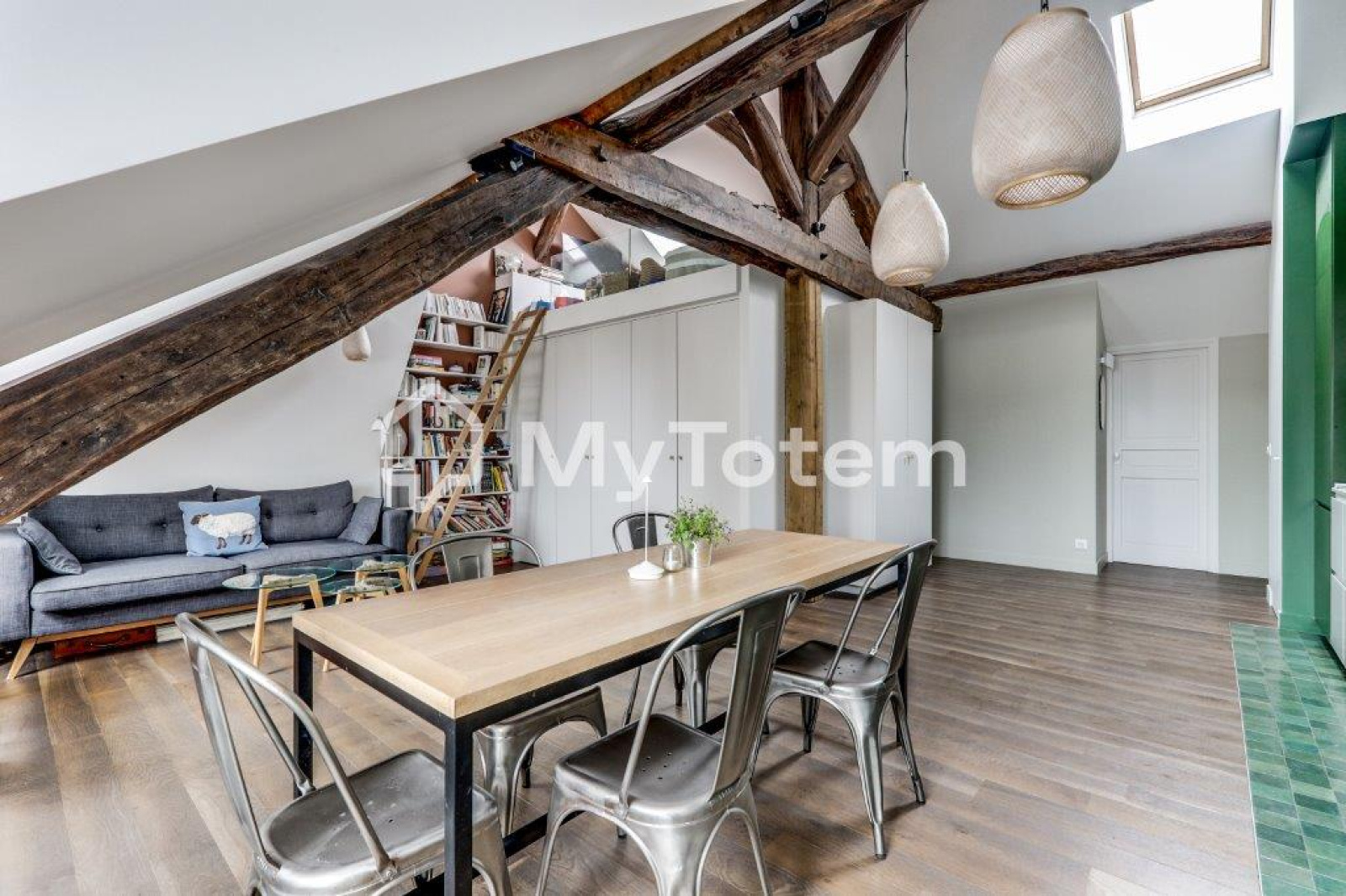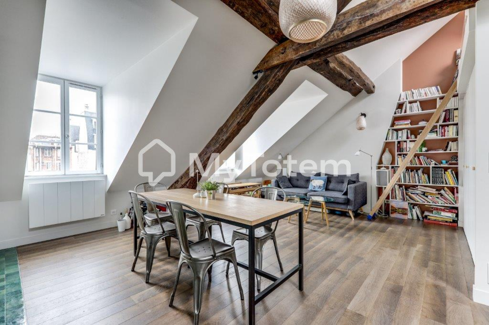Ce bien a été totalement repensé et réalisé par l'architecte Denise Omer dans un esprit cocon sous les toits de Paris tout en mélangeant praticité au quoitidien.