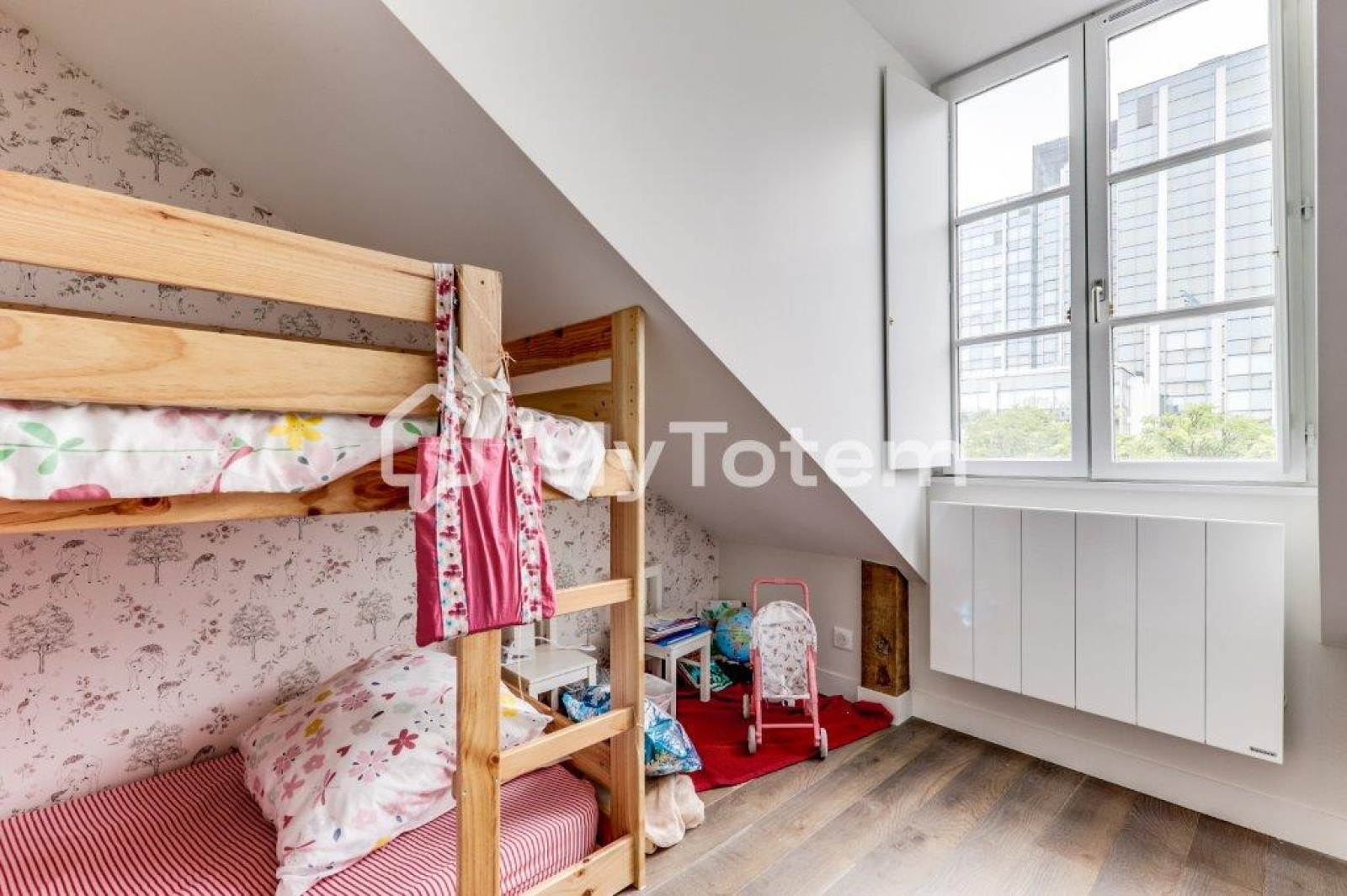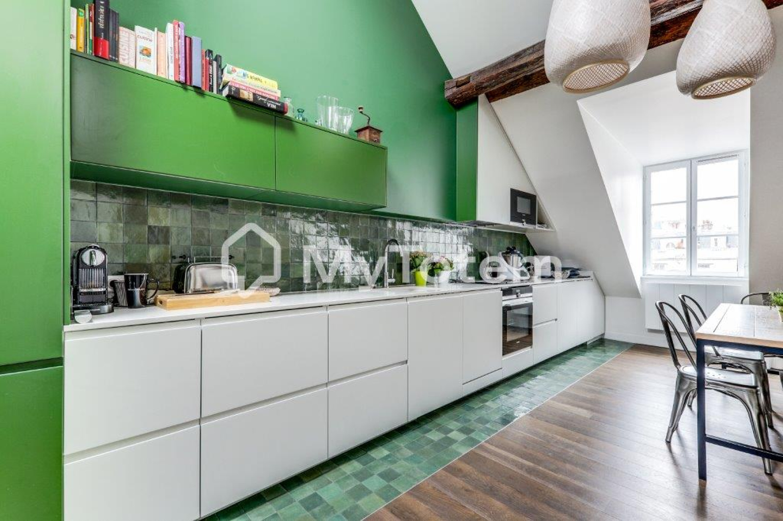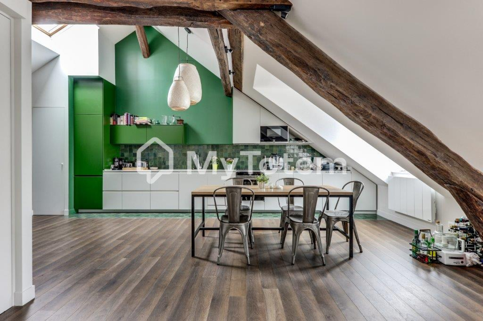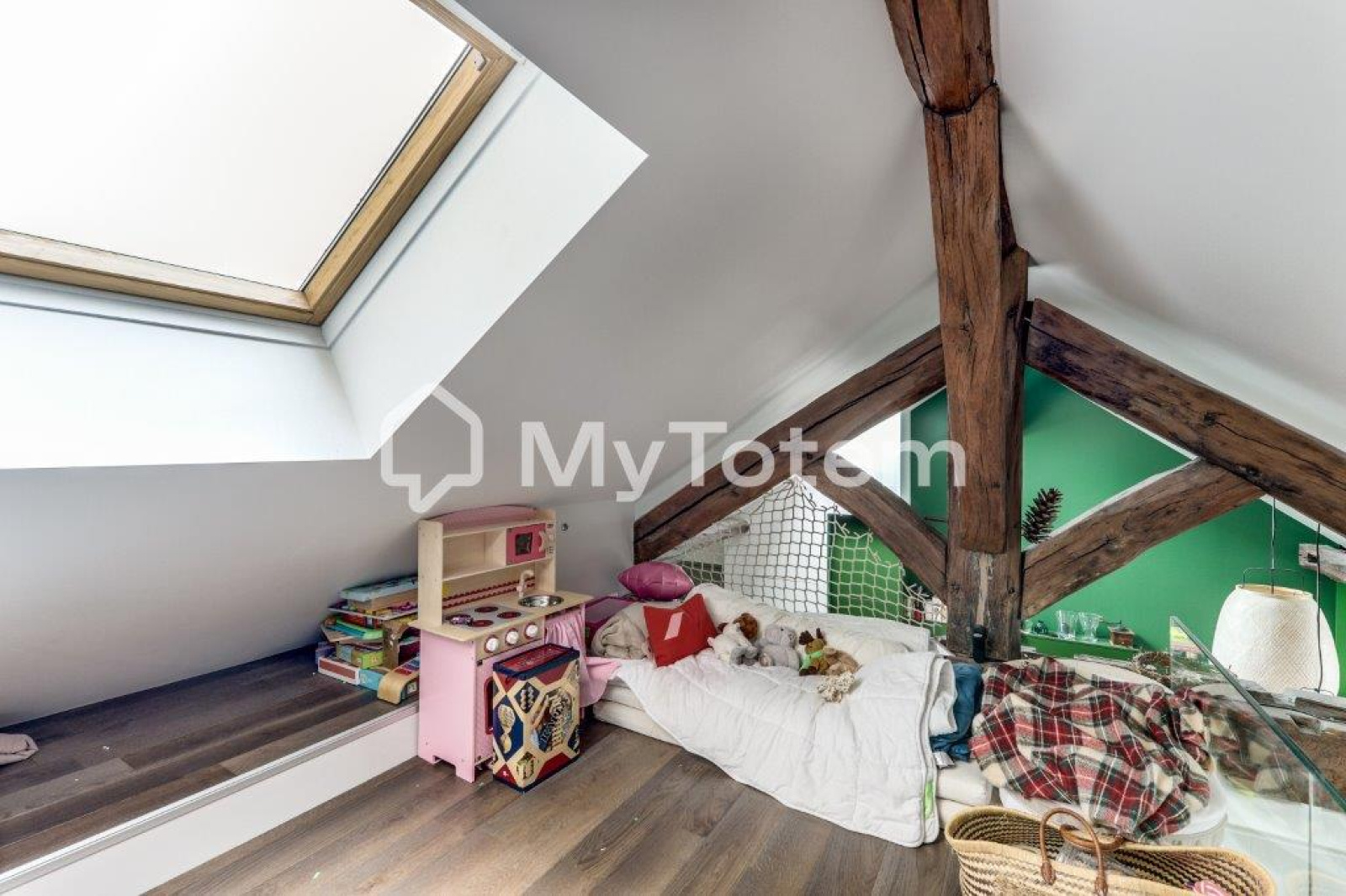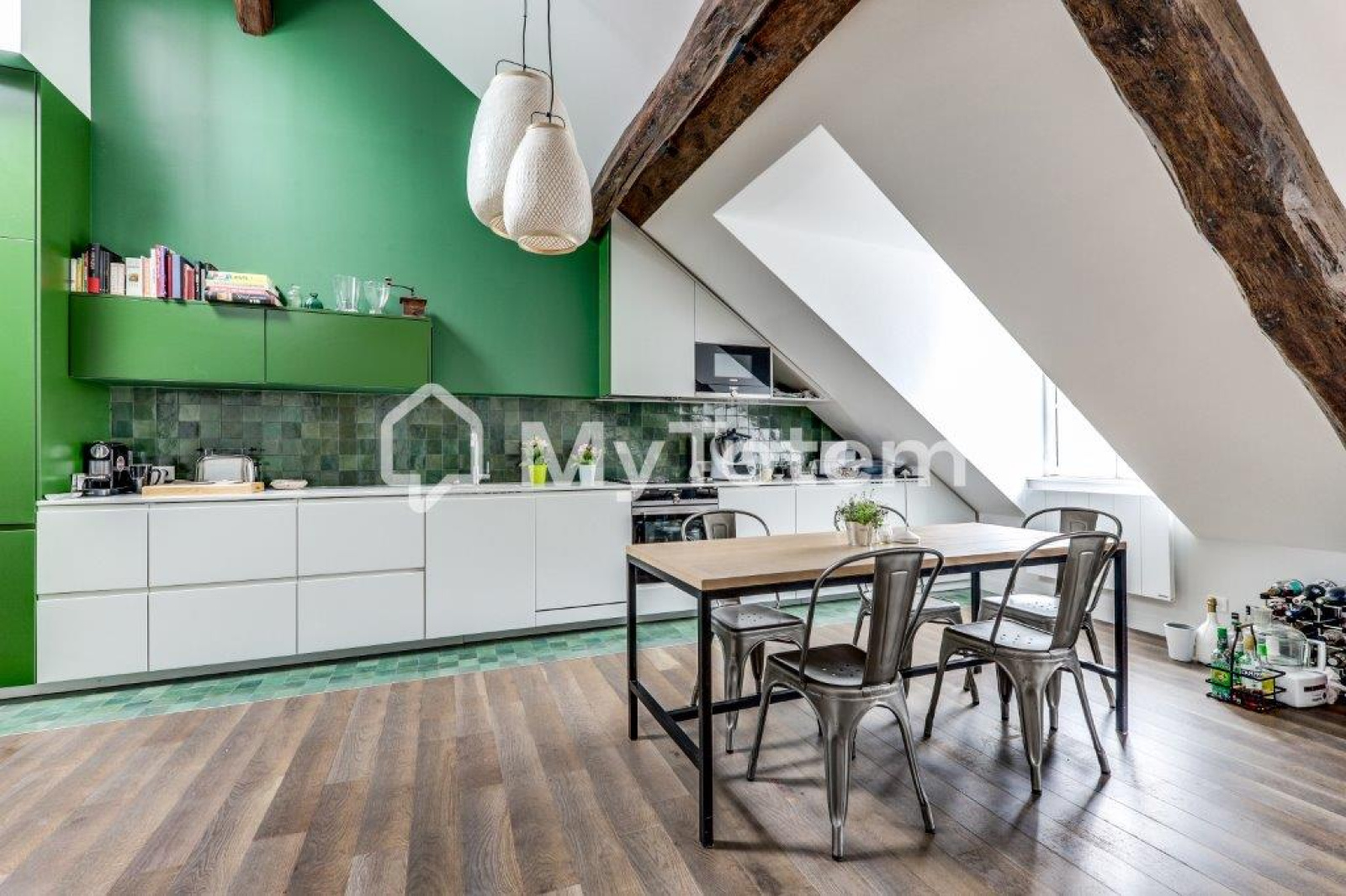 Ce bien a été totalement repensé et réalisé par l'architecte Denise Omer dans un esprit cocon sous les toits de Paris tout en mélangeant praticité au quoitidien.