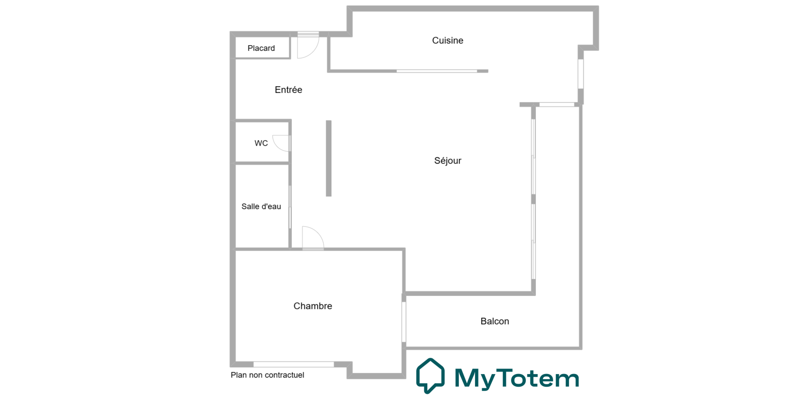 L'appartement est actuellement composé d'une entrée avec rangements, un double séjour avec cuisine ouverte aménagée et équipée donnant accès a un espace extérieur de 12,9m² , une chambre avec accès balcon, une salle d'eau et wc séparés.