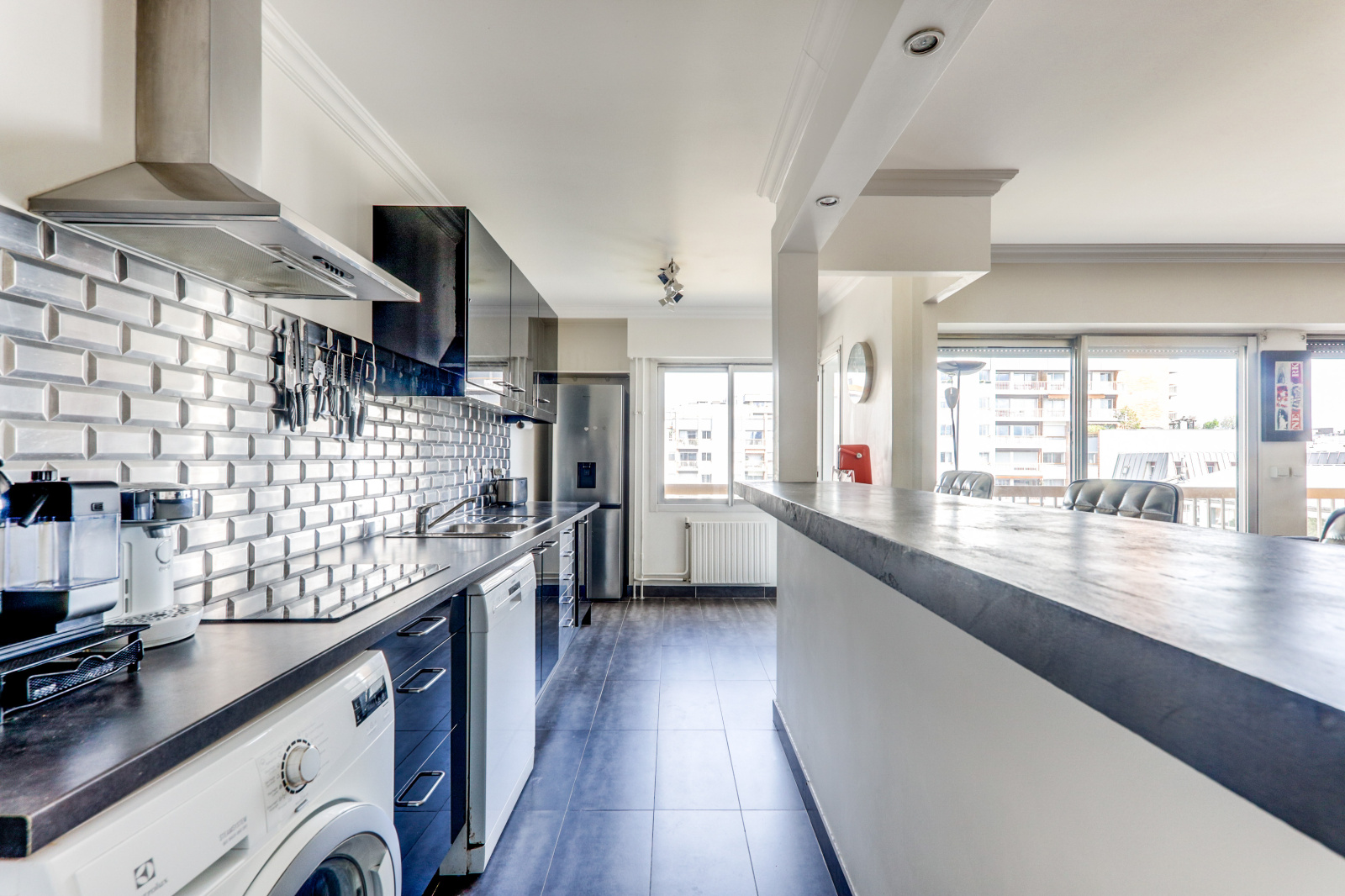 Baigné de lumière, l'appartement est très clair grace à l'ensemble de ses baies vitrées et une exposition du sud ouest.