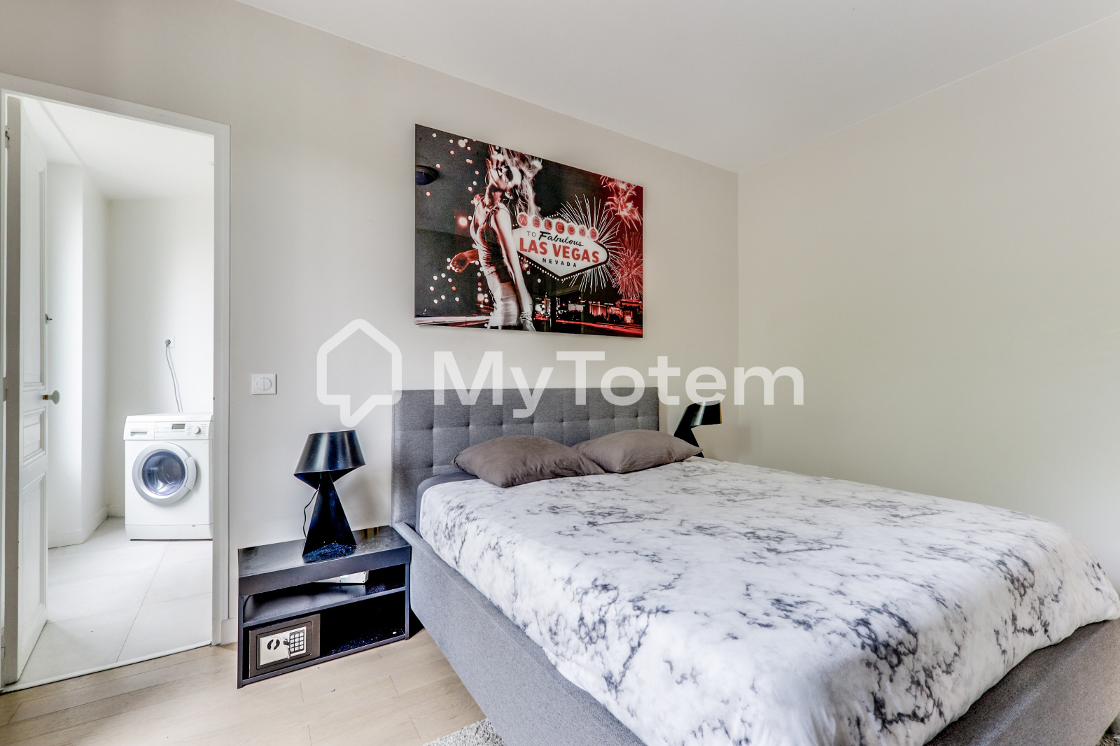 L'appartement se compose d'une entrée, un séjour spacieux avec cuisine américaine aménagée et équipée, une chambre avec accès salle d'eau et buanderie, un dressing et un W.C. indépendant.