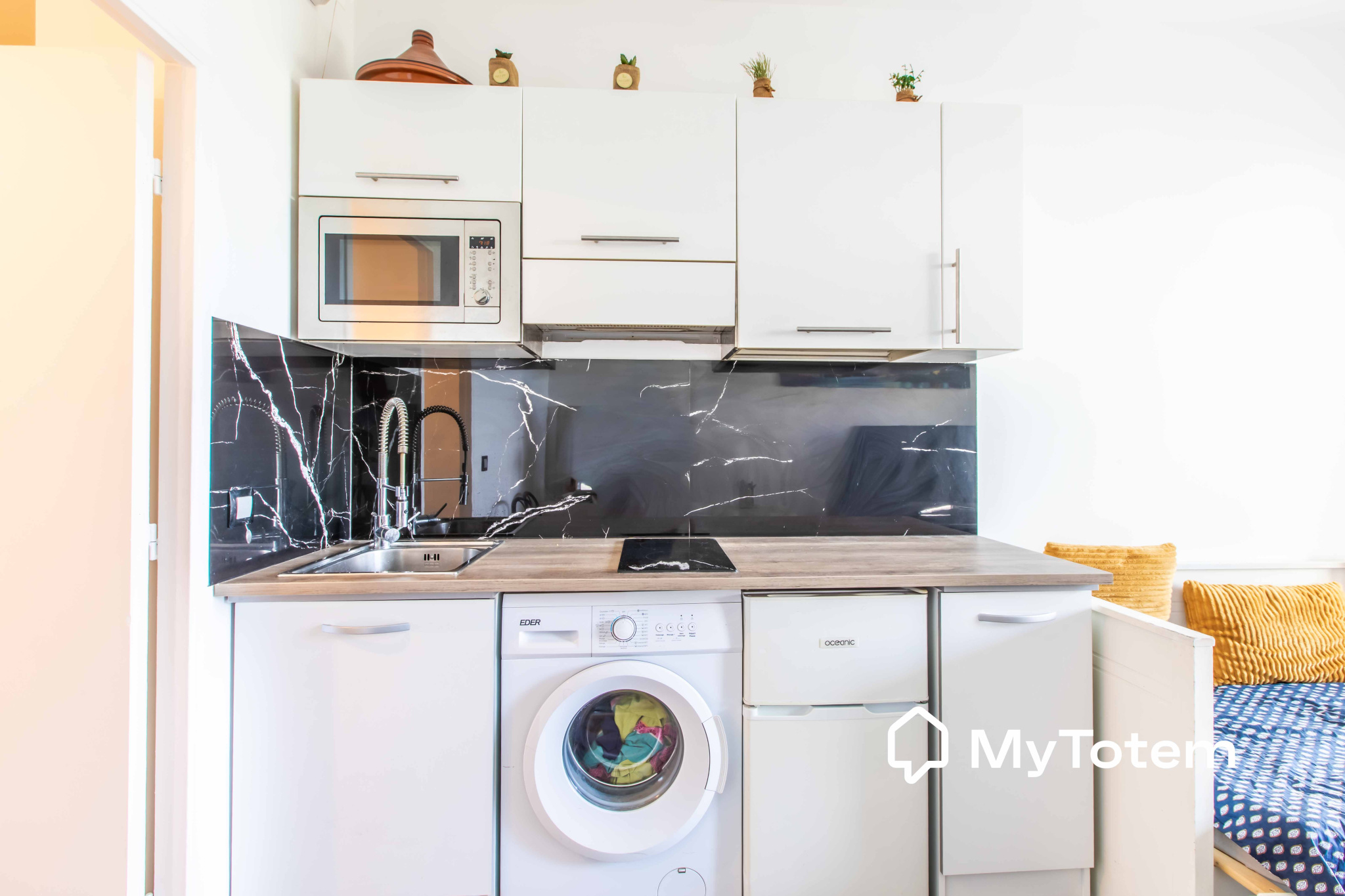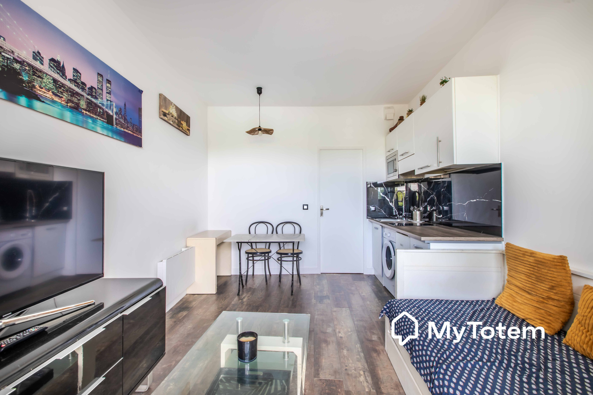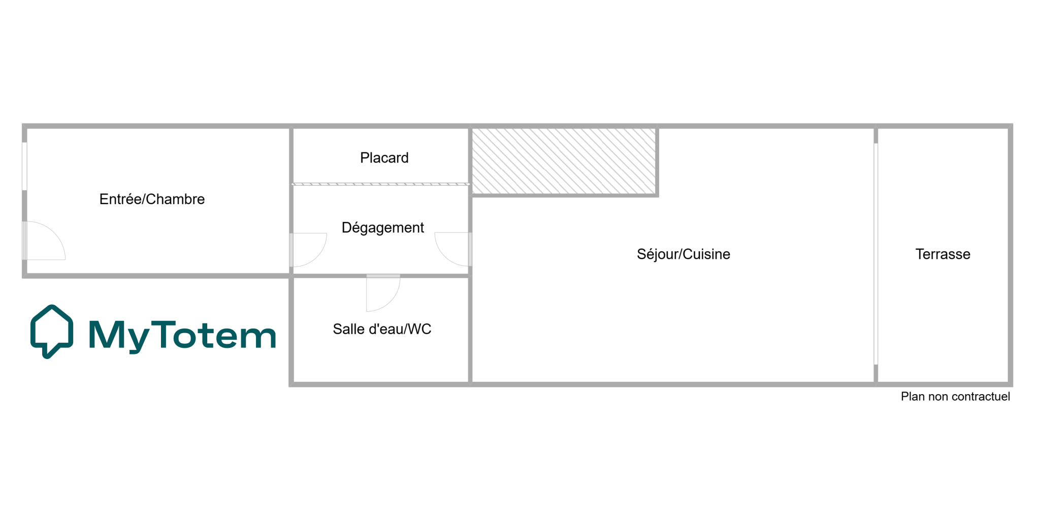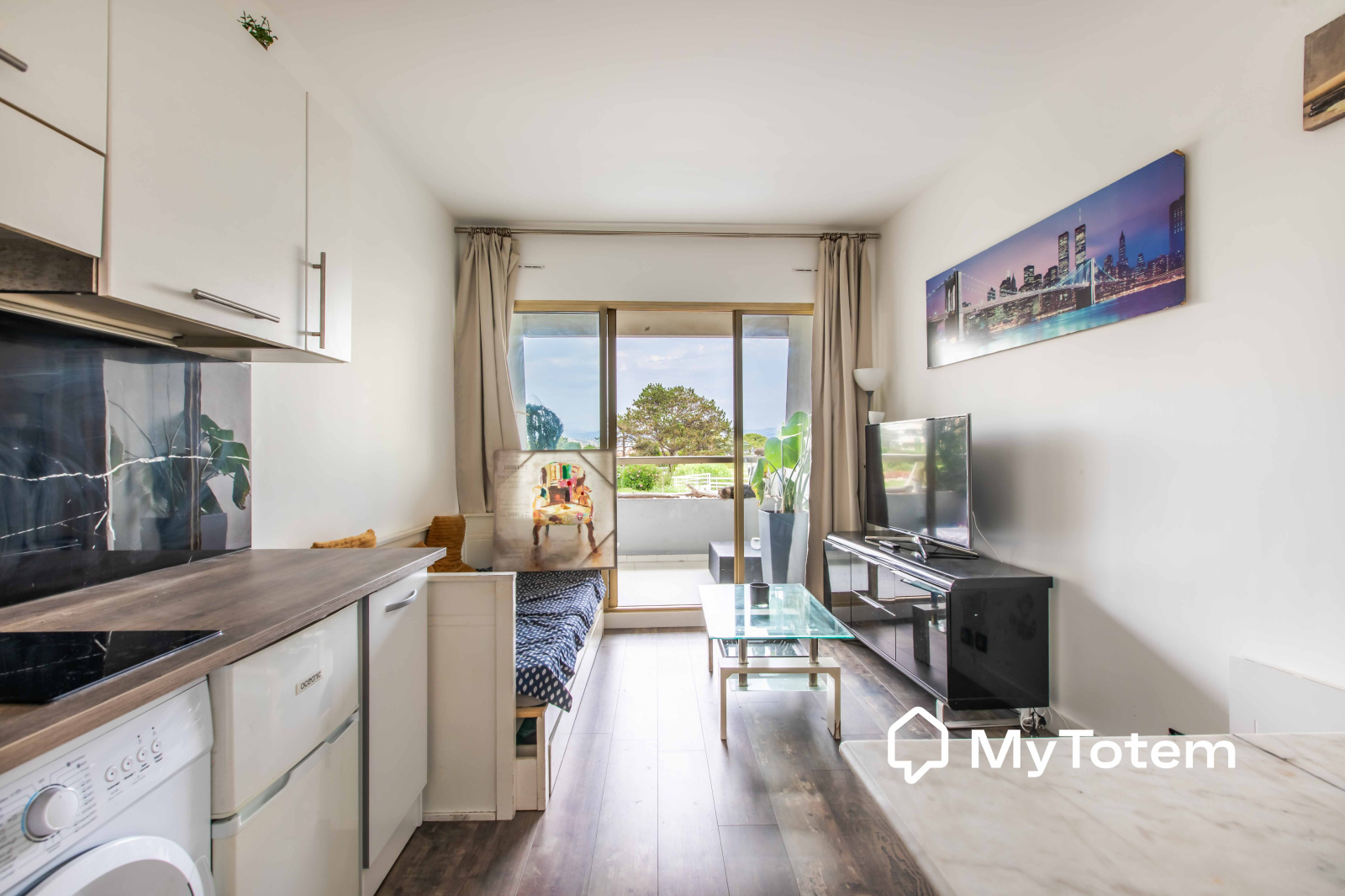 Ce studio de 24,22 m² se compose d'une entrée aménagée en coin nuit, d’un séjour lumineux avec cuisine ouverte équipée, le tout donnant sur une terrasse de plus de 5.22 m².
