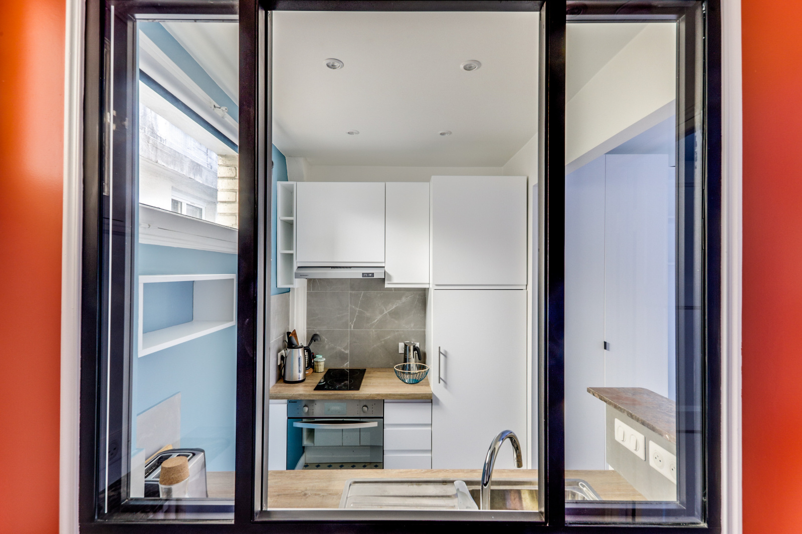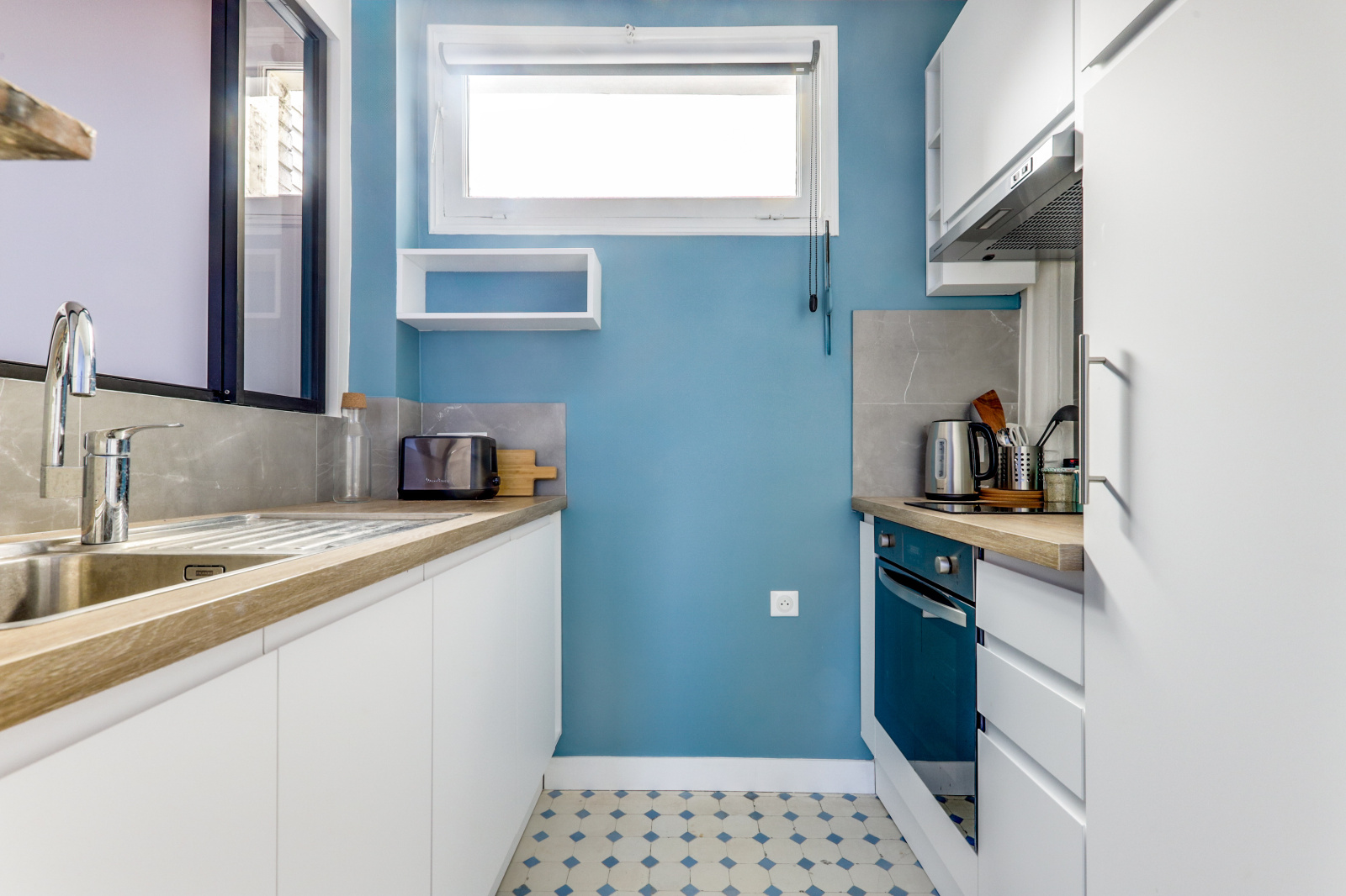 D'une cuisine fonctionnelle, aménagée et semi-séparée,