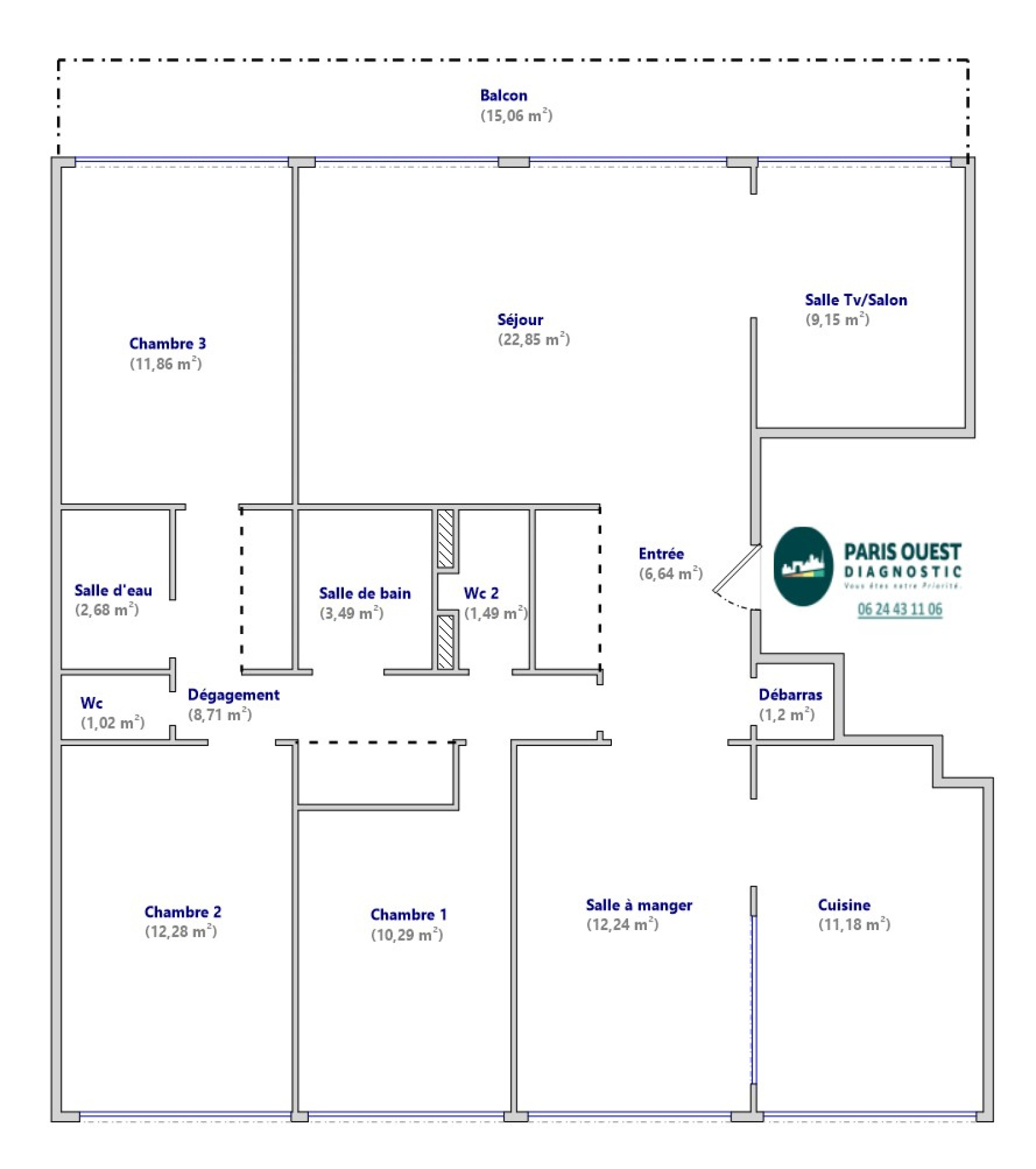 Dans une résidence familiale sécurisée et verdoyante, appartement familial 6 pièces de 115 m² avec balcon exposé SUD.