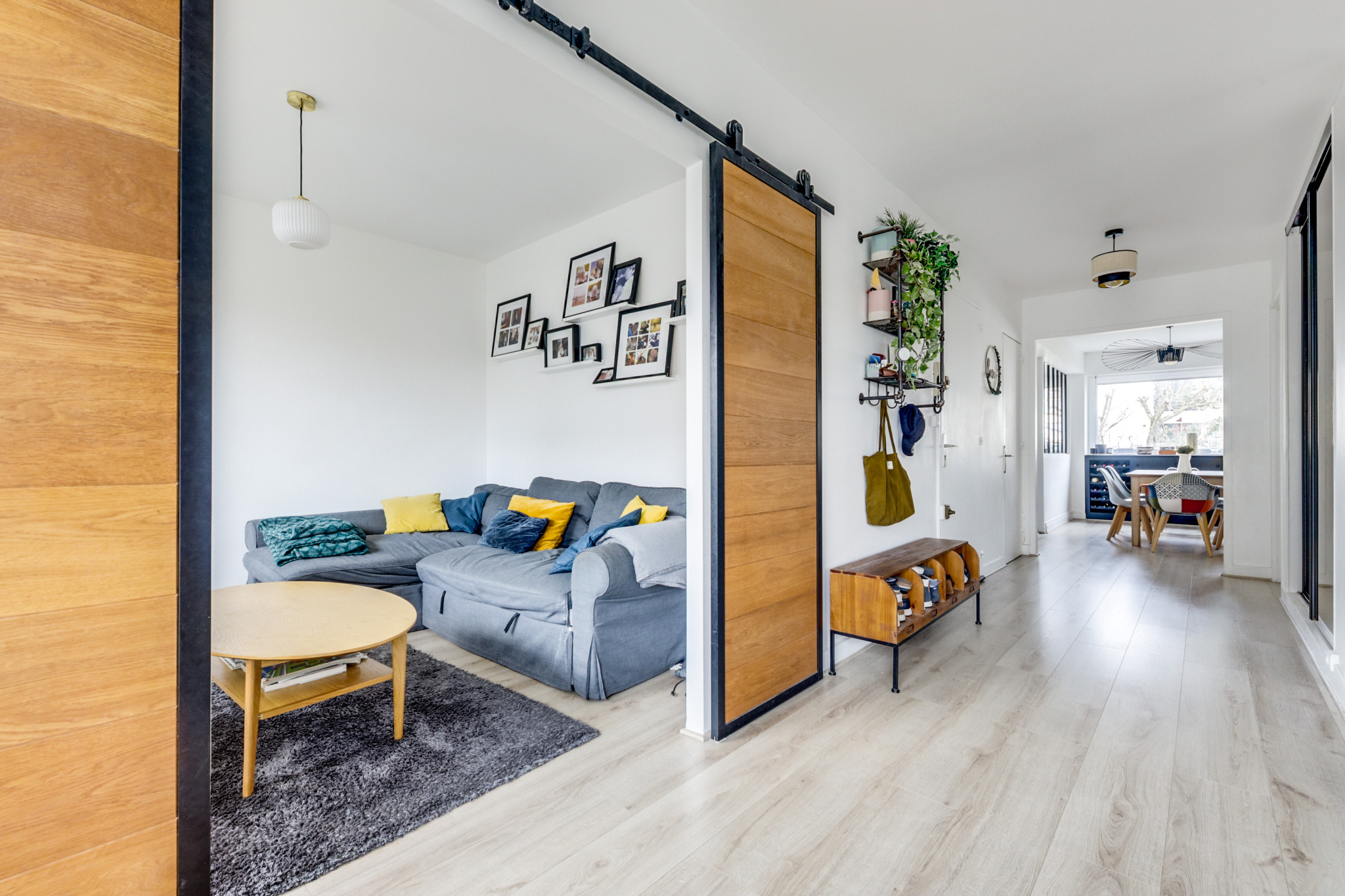 Entrée avec placard, double séjour, salle à manger, cuisine indépendante séparée par une verriere, salle tv (ou chambre 4 / bureau), 3 chambres, salle d'eau, salle de bains, 2 wc indépendants.