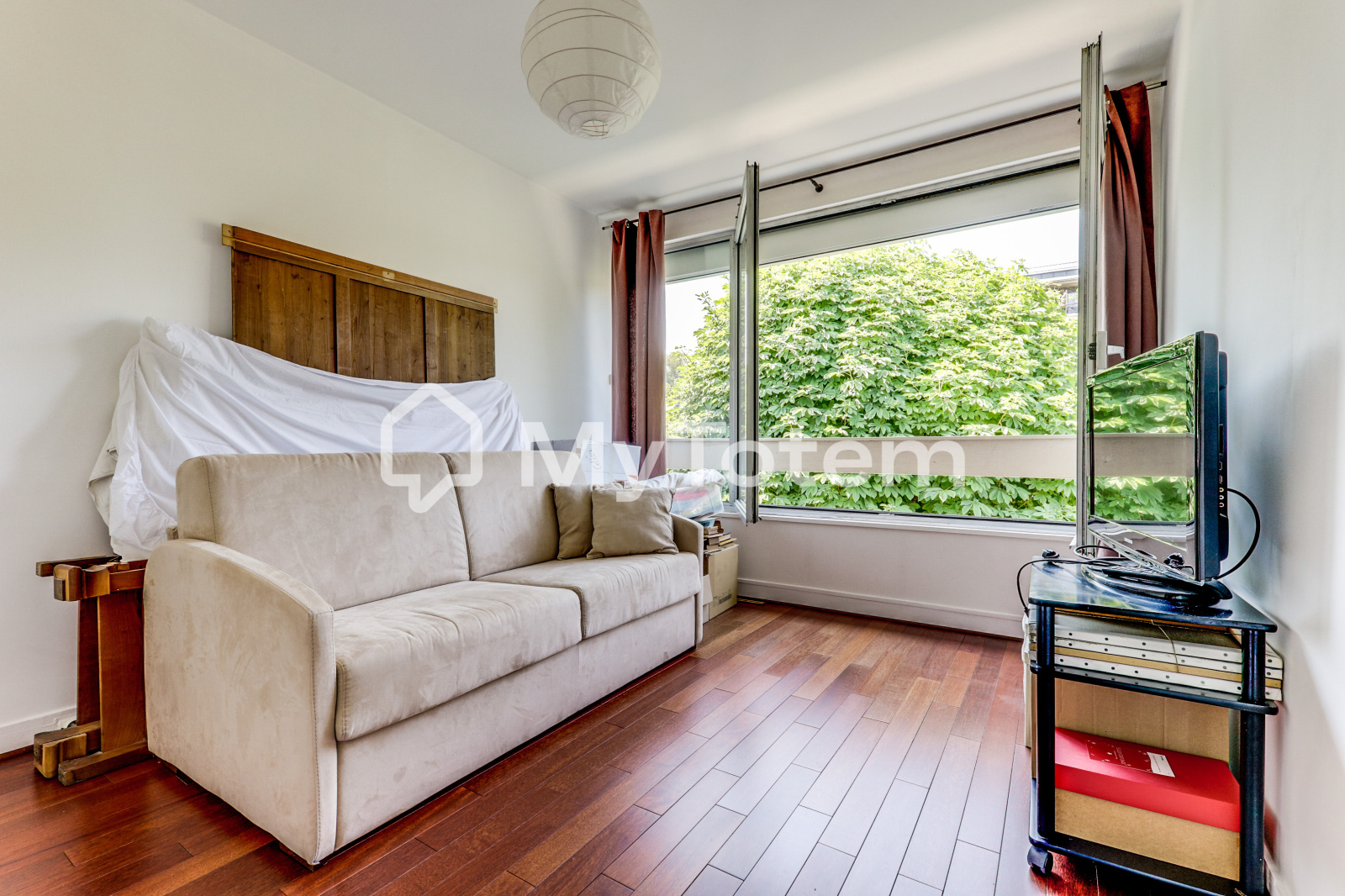 de Marly-Le-Roi et un accès au balcon, une cuisine séparée aménagée et équipée, 2 chambres dont une avec un accès au balcon et vue sur la forêt, une salle de bain et WC séparés