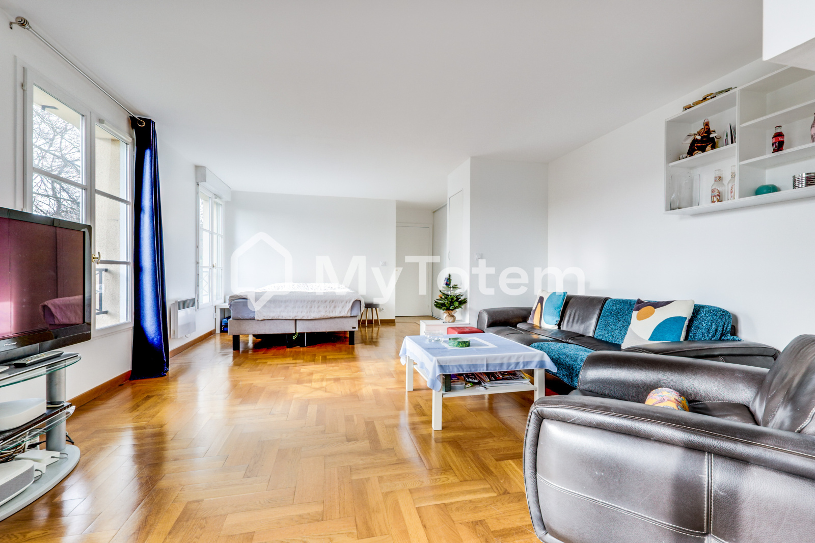 Entrée, avec placard, double séjour (possibilité 2 ème chambre), cuisine aménagée et équipée, chambre, salle de bain et wc.