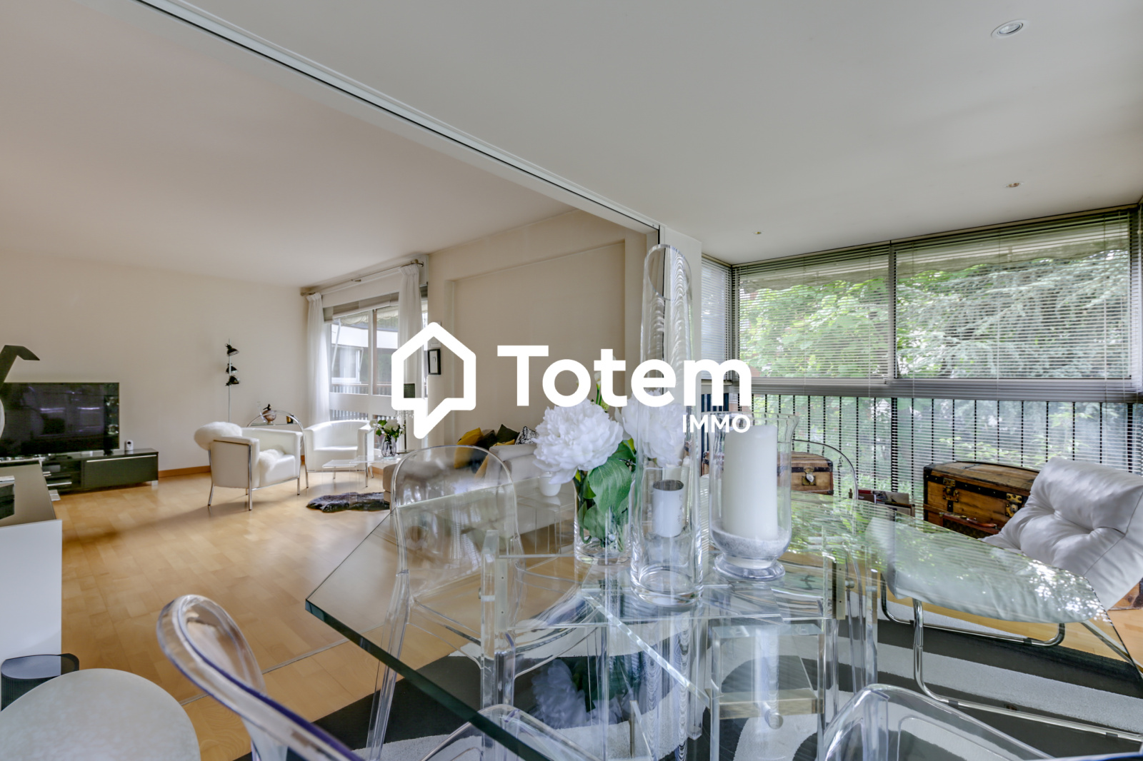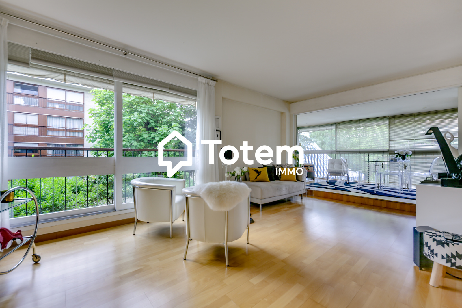 Dans une magnifique résidence arborée, a 2 pas du Centre Commercial Parly II, venez découvrir ce très bel appartement de 86m², au 1er étage d'une copropriété semi récente (Immeuble de type 2 de 2 étages) et comprenant, une entrée, un double séjour, une loggia, une cuisine séparée entièrement aménagée et équipée, 2 belles chambres avec nombreux rangements donnant sur un balcon de 9m², une salle d'eau refaite récemment avec douche à l'italienne, des wc séparés, une cave et une place de parking extérieure