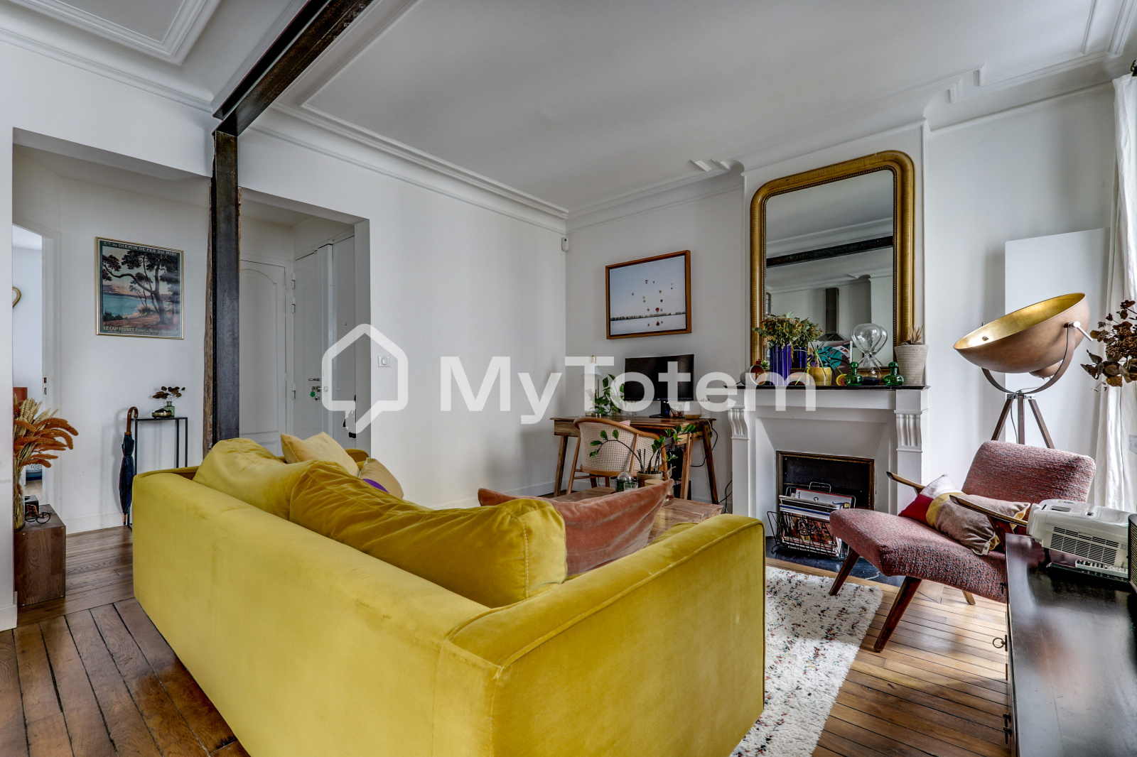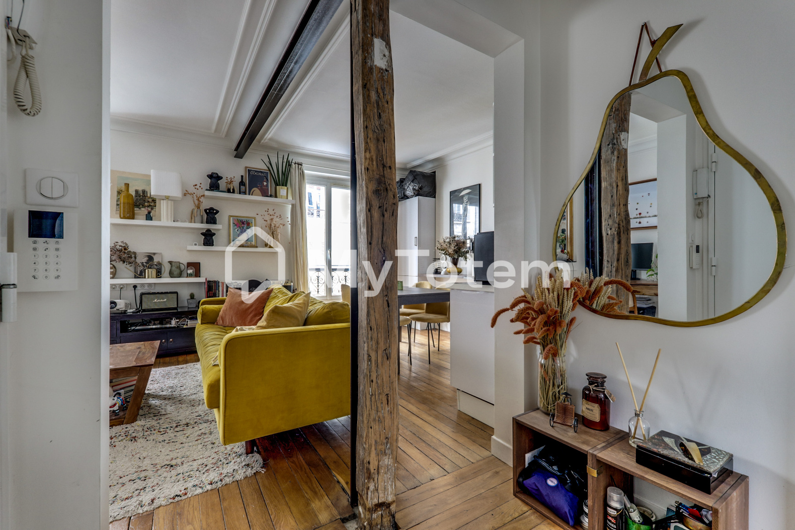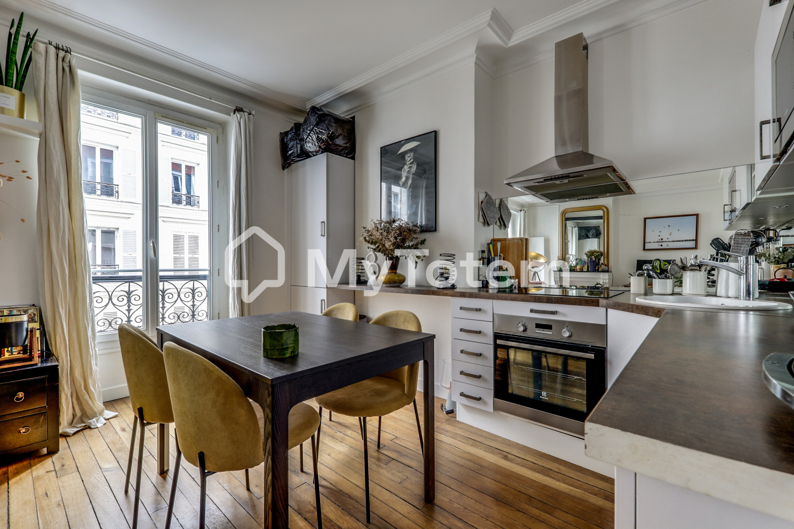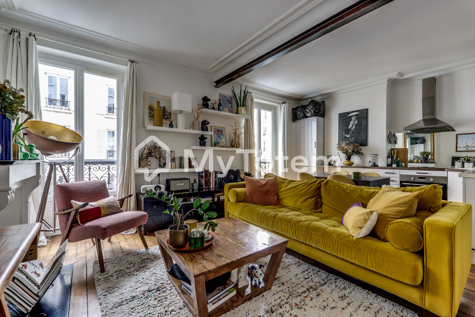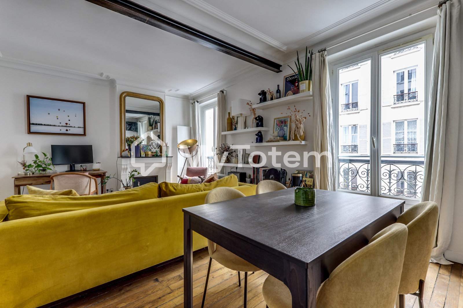 Entre le métro Bronchant et le Square des Batignolles, un appartement cosy de 41m² situé au 2ème étage d'un immeuble ancien de bon standing.