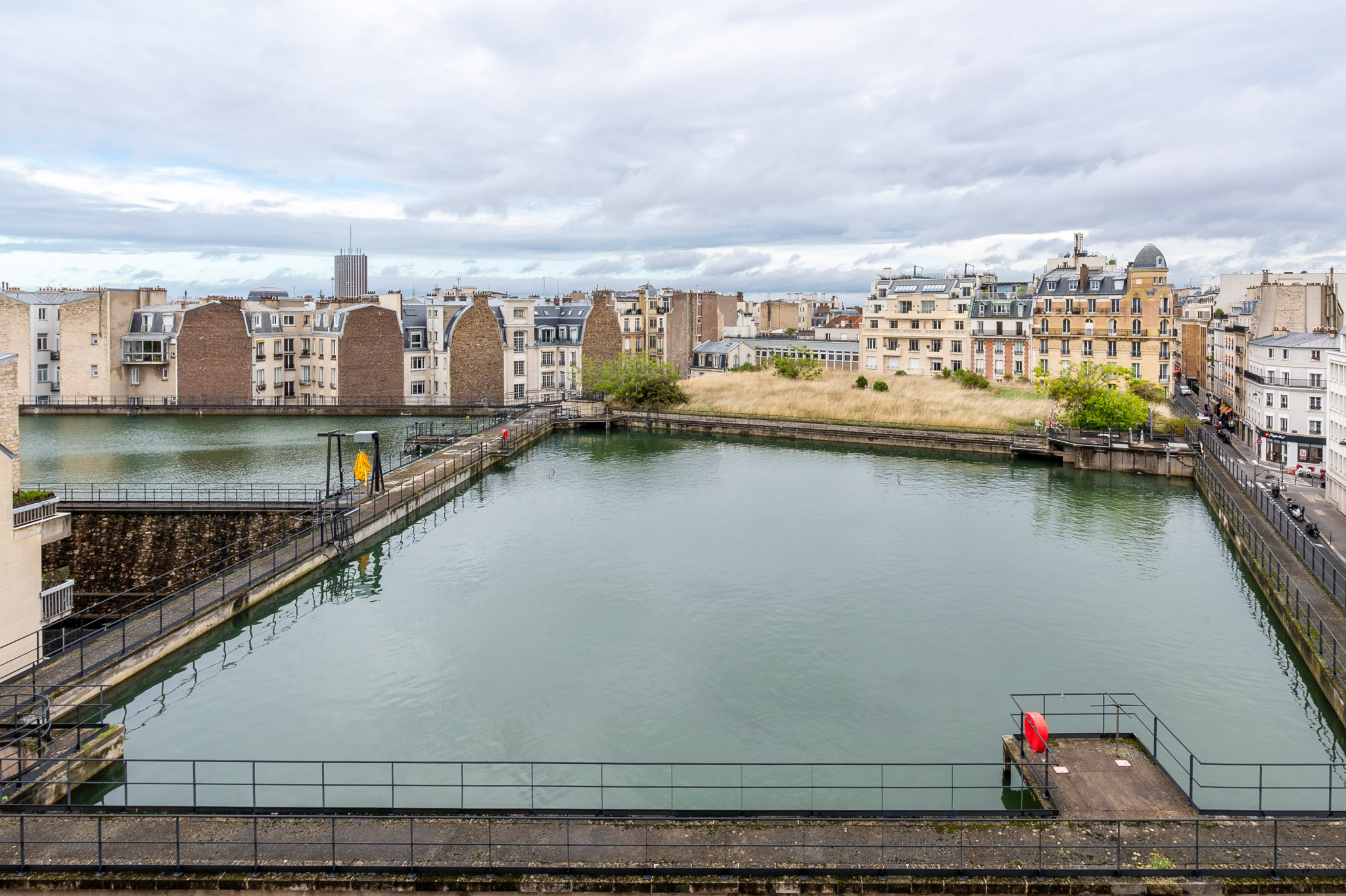 La chambre, au calme, bénéficie d'une vue exceptionnelle sur les bassins à ciel ouvert du réservoir de Passy.