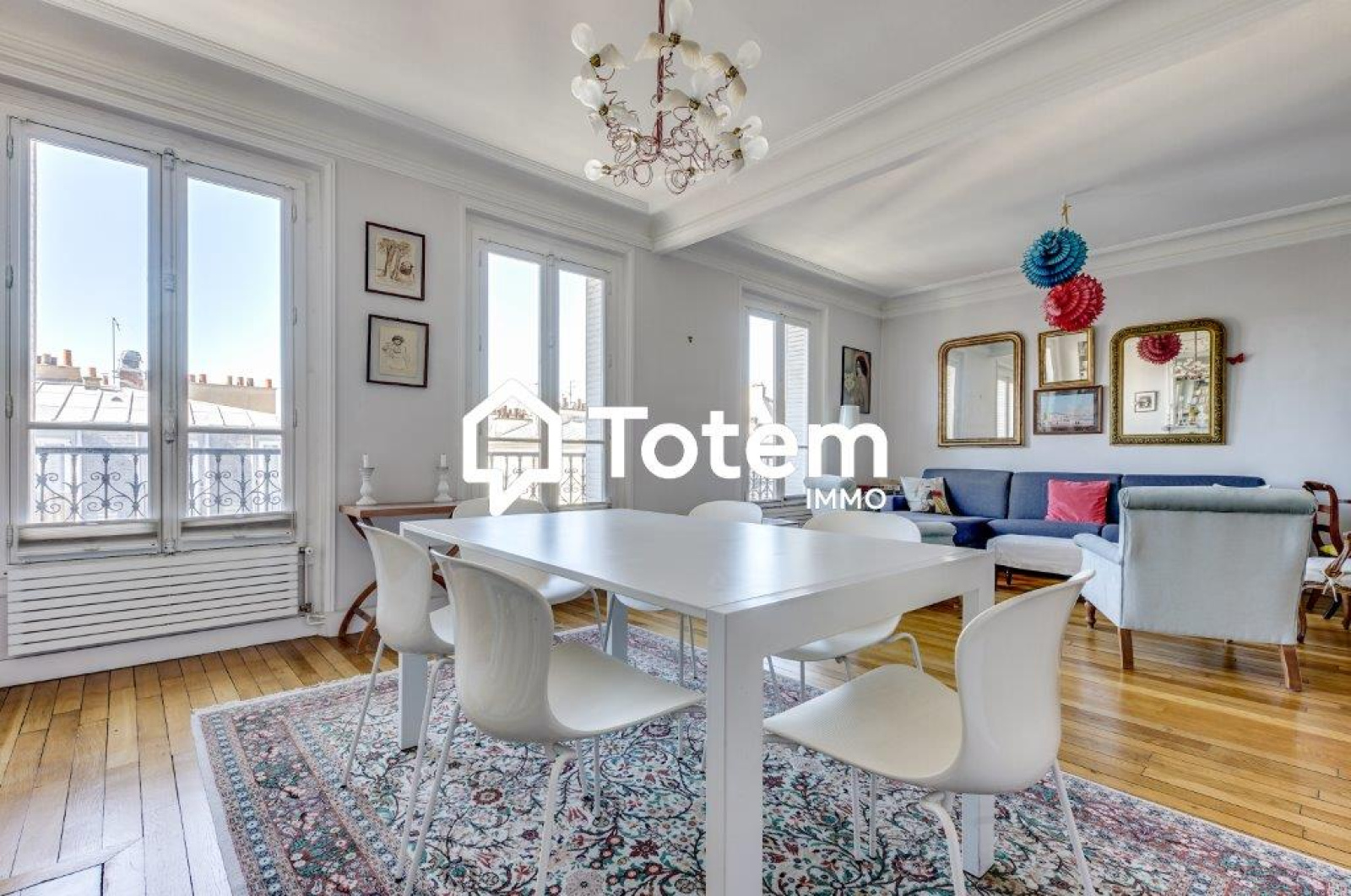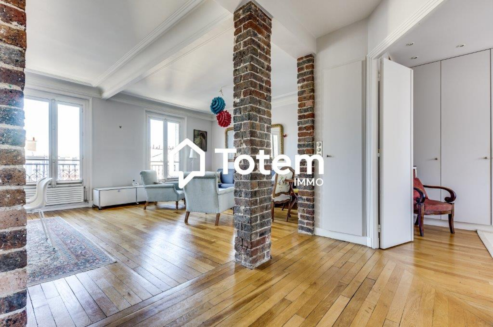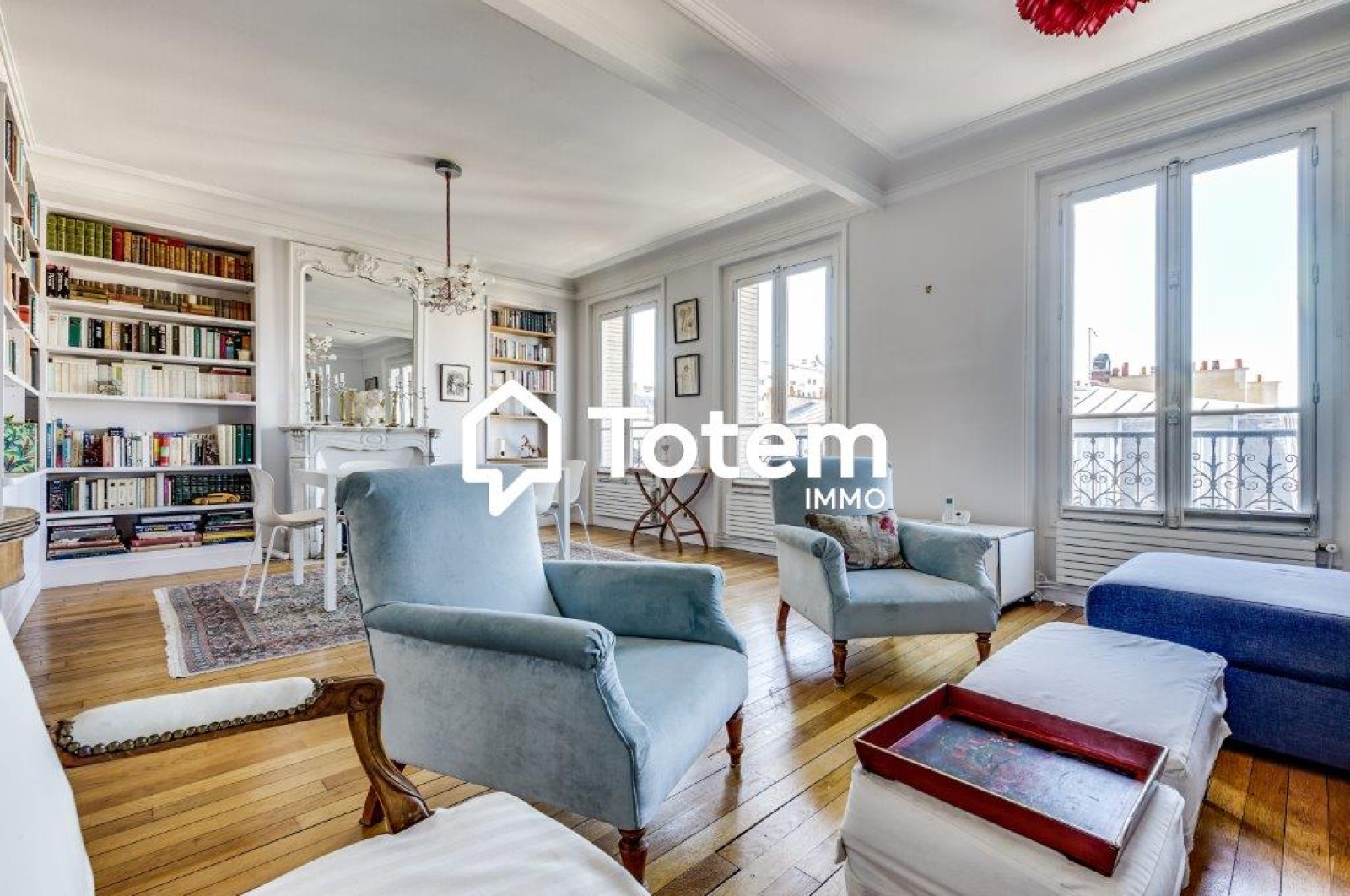 Traversant et lumineux. Vue totalement dégagée sur la Tour Eiffel et les toits de Paris.