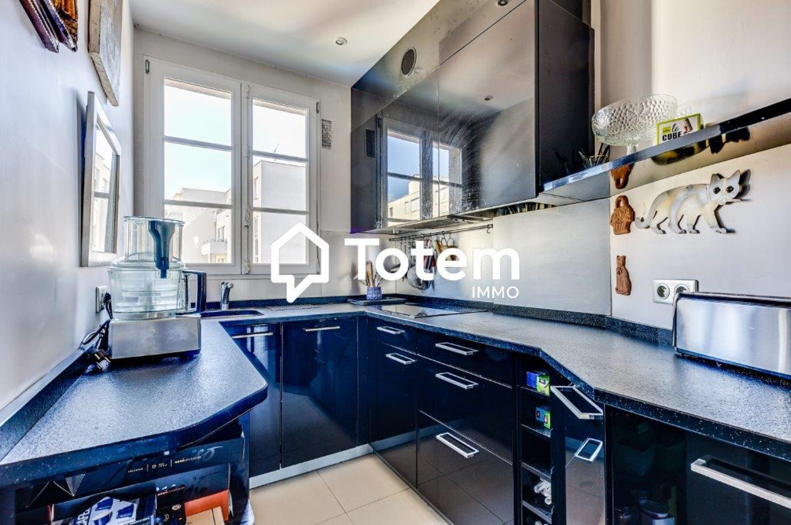 Entrée, double séjour avec cheminée et vue sur la Tour Eiffel, cuisine aménagée et équipée, chambre avec salle de bains ( 2 possibles), wc indépendnat et cave.