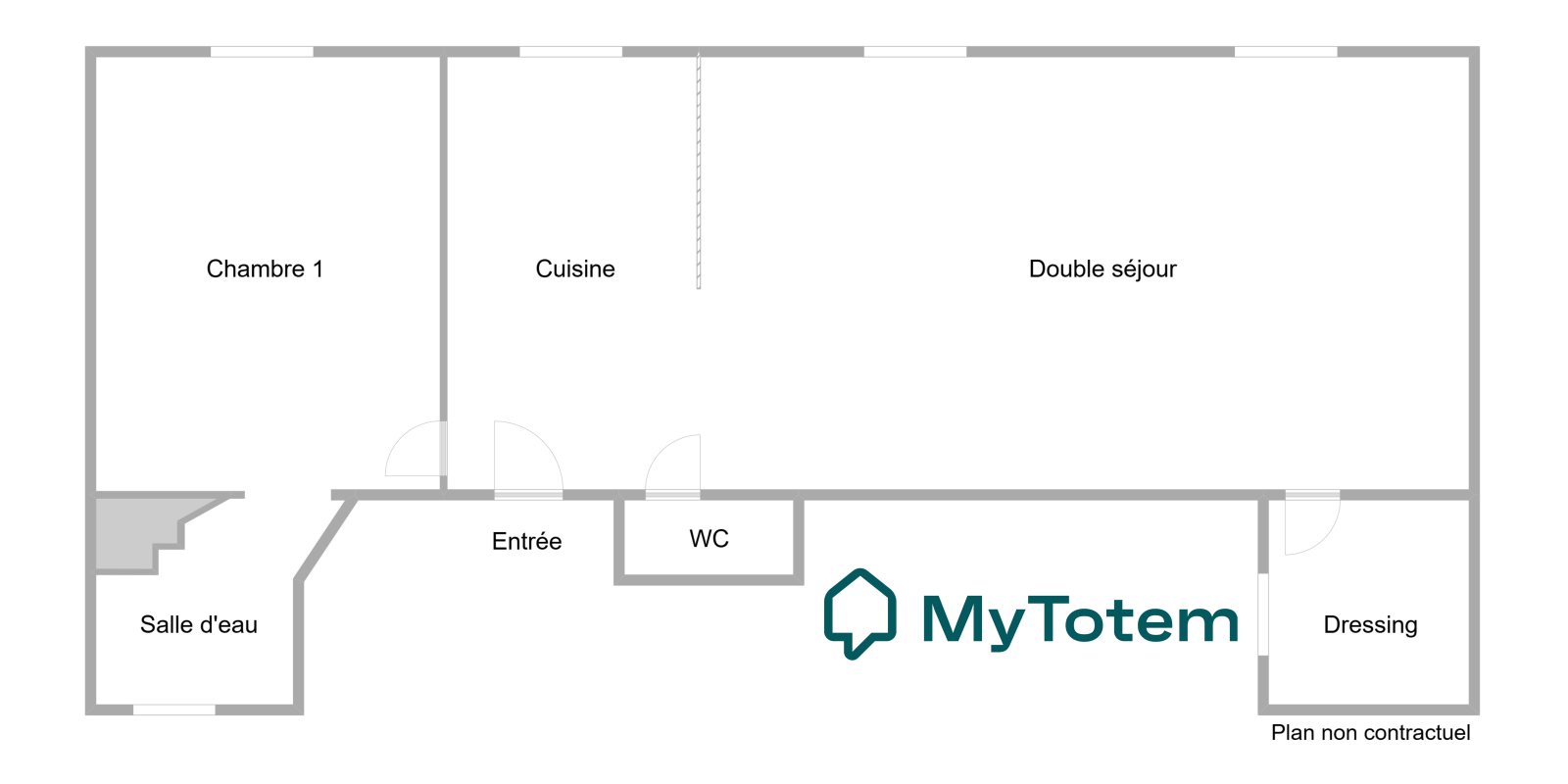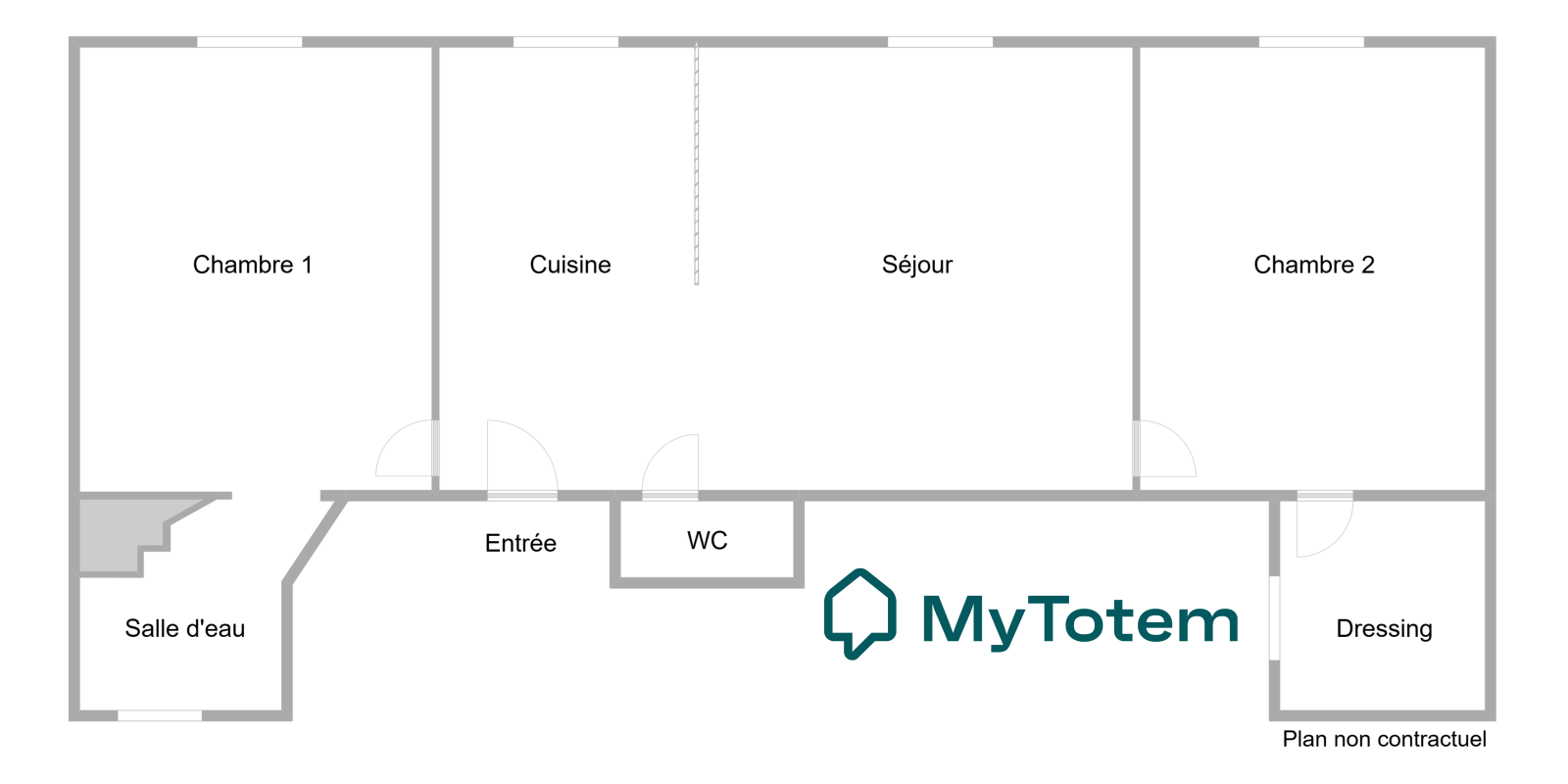 Actuellement configuré en 3 pièces 1 chambre, on peut facilement recréer la seconde chambre (cf plan)