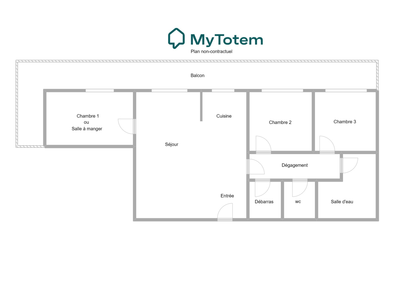Entrée, séjour/salle à manger, cuisine ouverte, 2 ou 3 chambres, salle de bains avec 2 douches, dressing et cave.