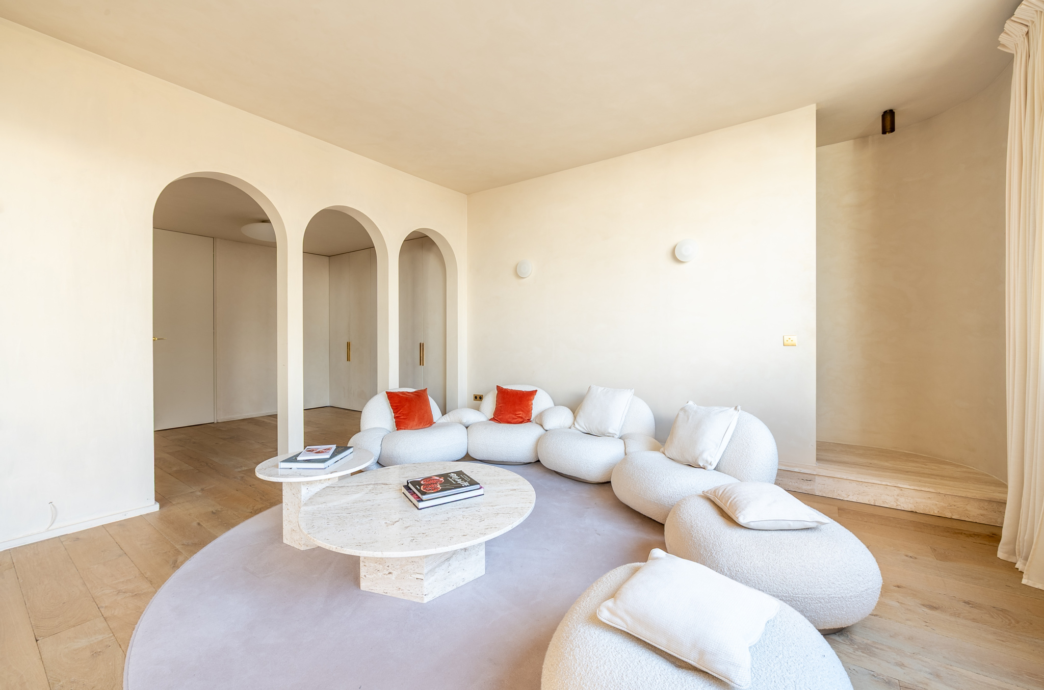 Un vaste espace de réception baigné de lumière,
