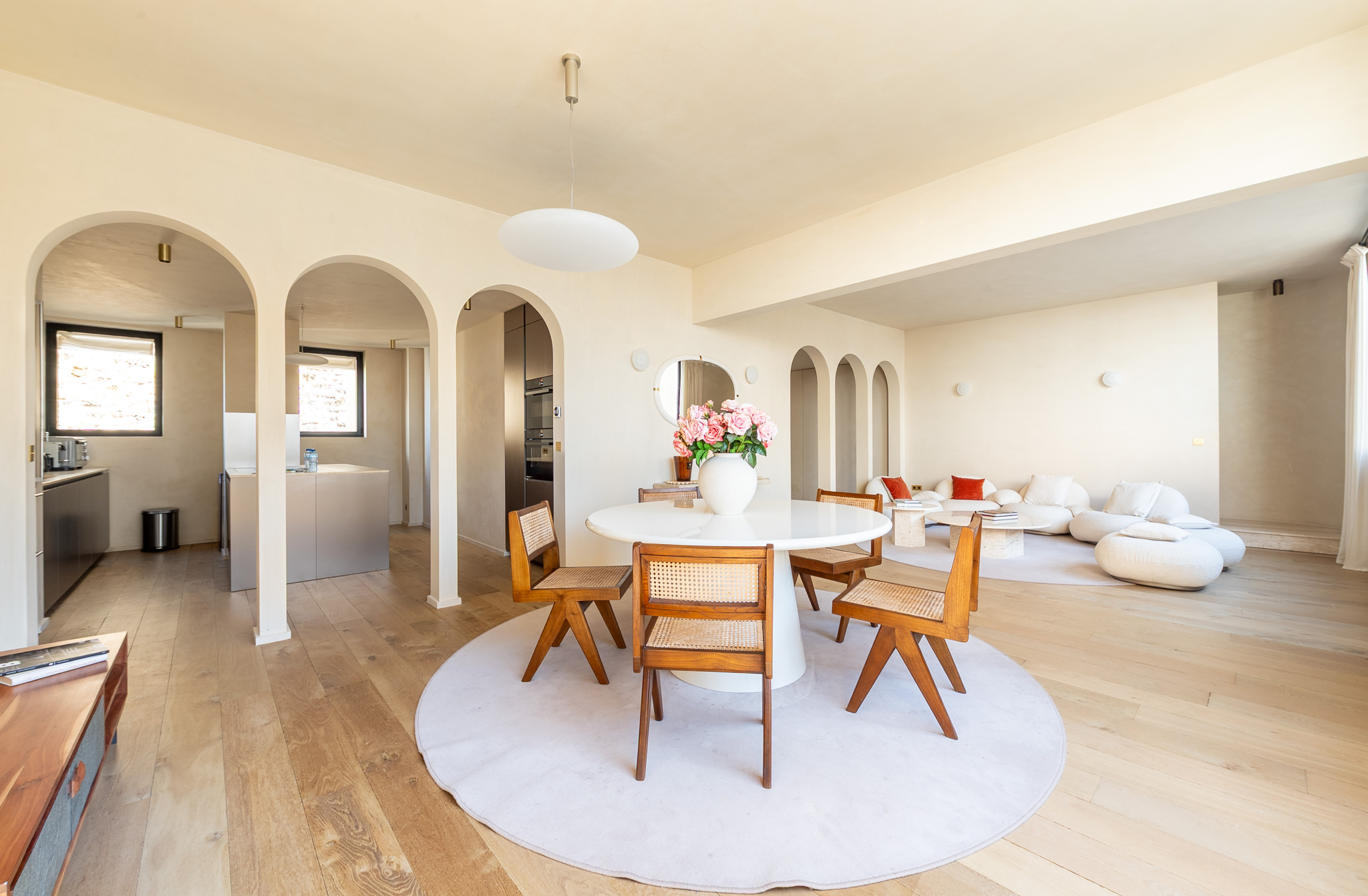 Un vaste espace de réception baigné de lumière,