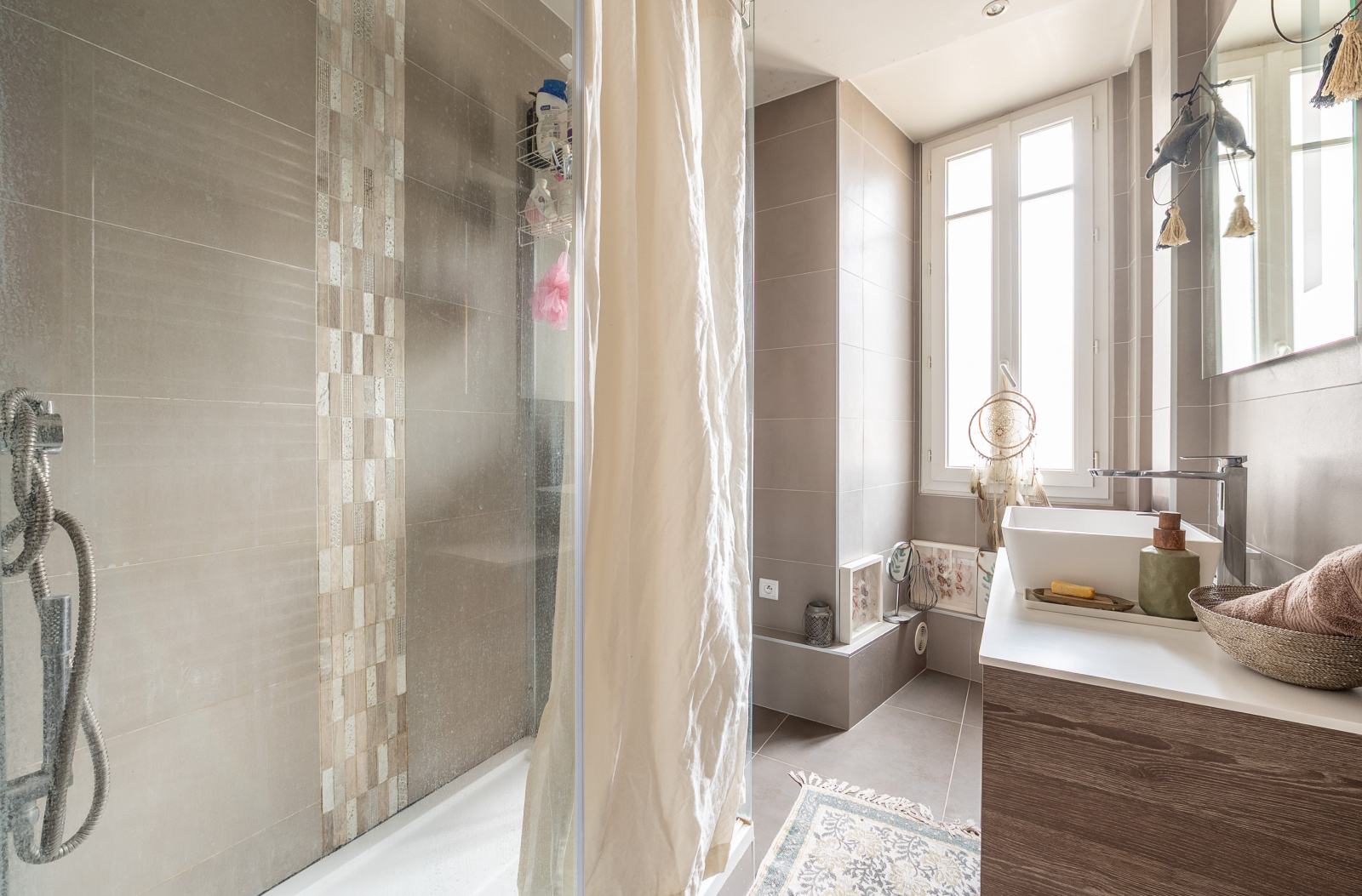 Une salle d’eau moderne, des toilettes séparées et des rangements bien pensés viennent compléter ce bien.
