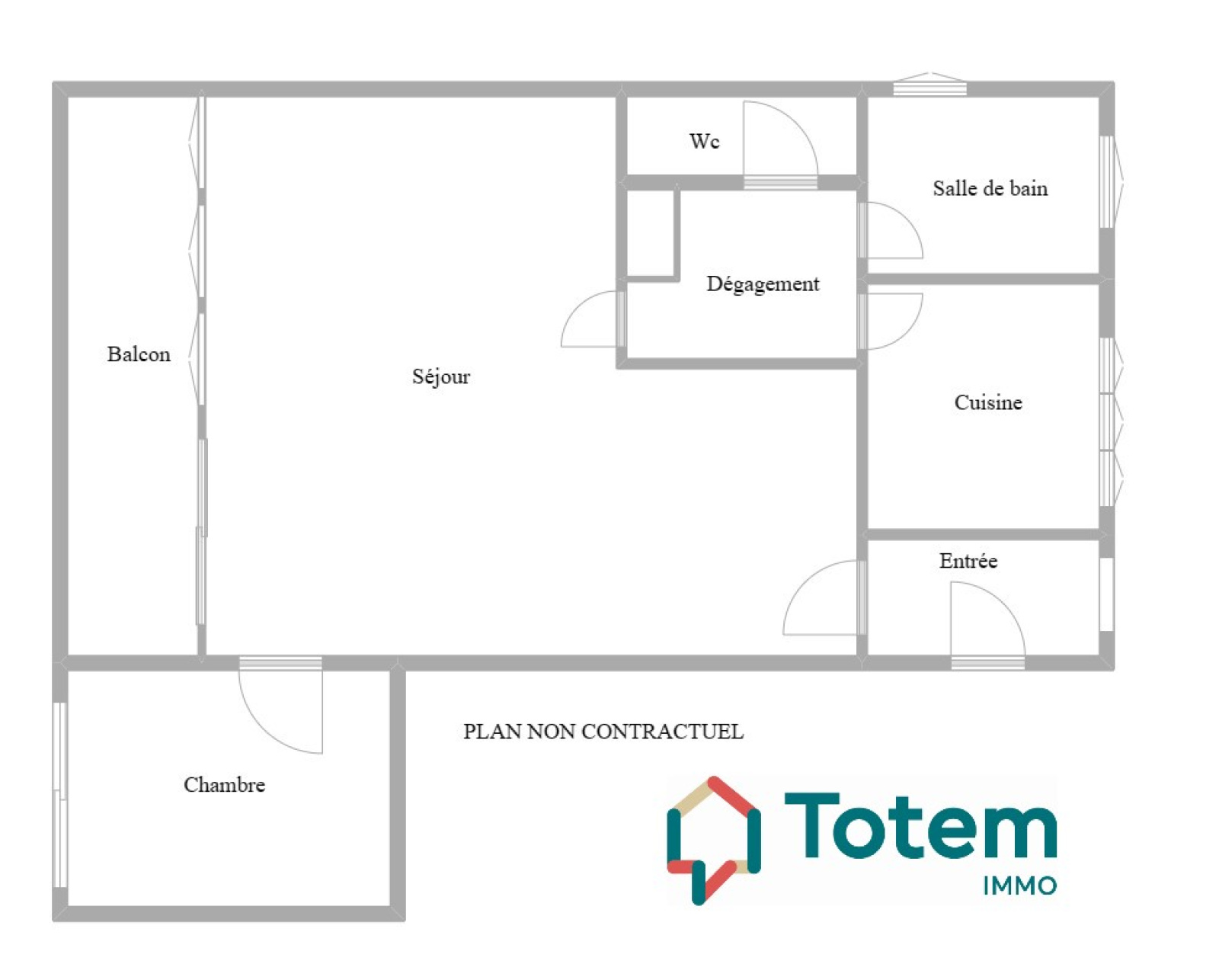Entrée, double séjour avec grand balcon (11m²) donnant sur grand jardin appartenant à la copropriété, 1 ou 2 chambres, cuisine indépendante, grande salle d'eau (possible salle de bain), wc indépendant et cave.