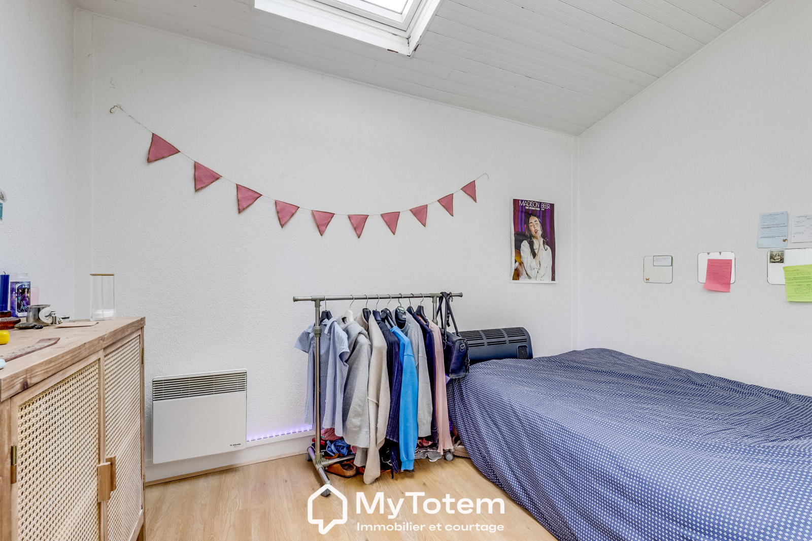 Une première chambre baignée de lumière, équipée d’un Velux, profite d’une belle luminosité naturelle tout au long de la journée.