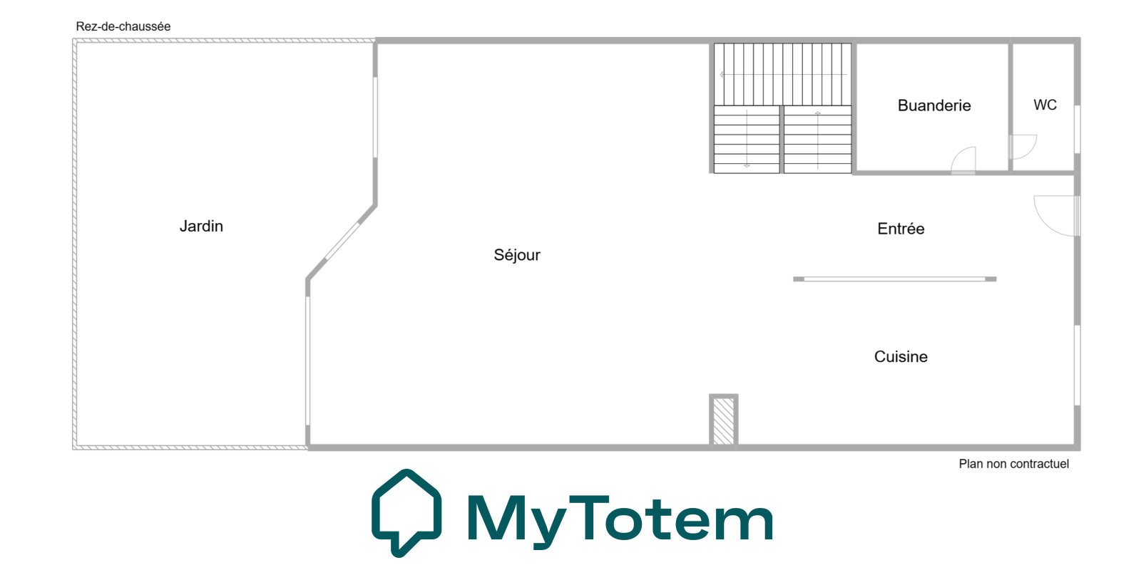 Au niveau principal, une vaste pièce de vie de 47 m² réunit un séjour, une salle à manger et une cuisine ouverte, le tout prolongé par un jardin privatif. Une buanderie et un WC indépendant complètent ce niveau.