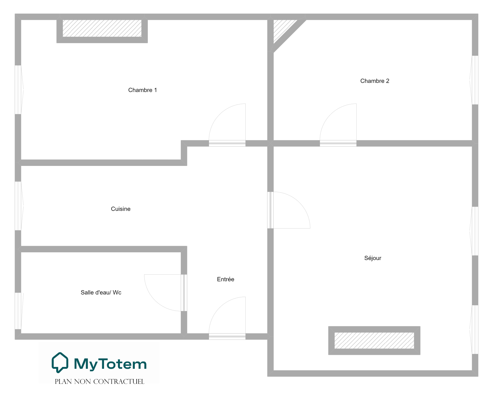 un séjour lumineux, deux chambres, une cuisine semi ouverte, une salle d'eau + wc et une cave.