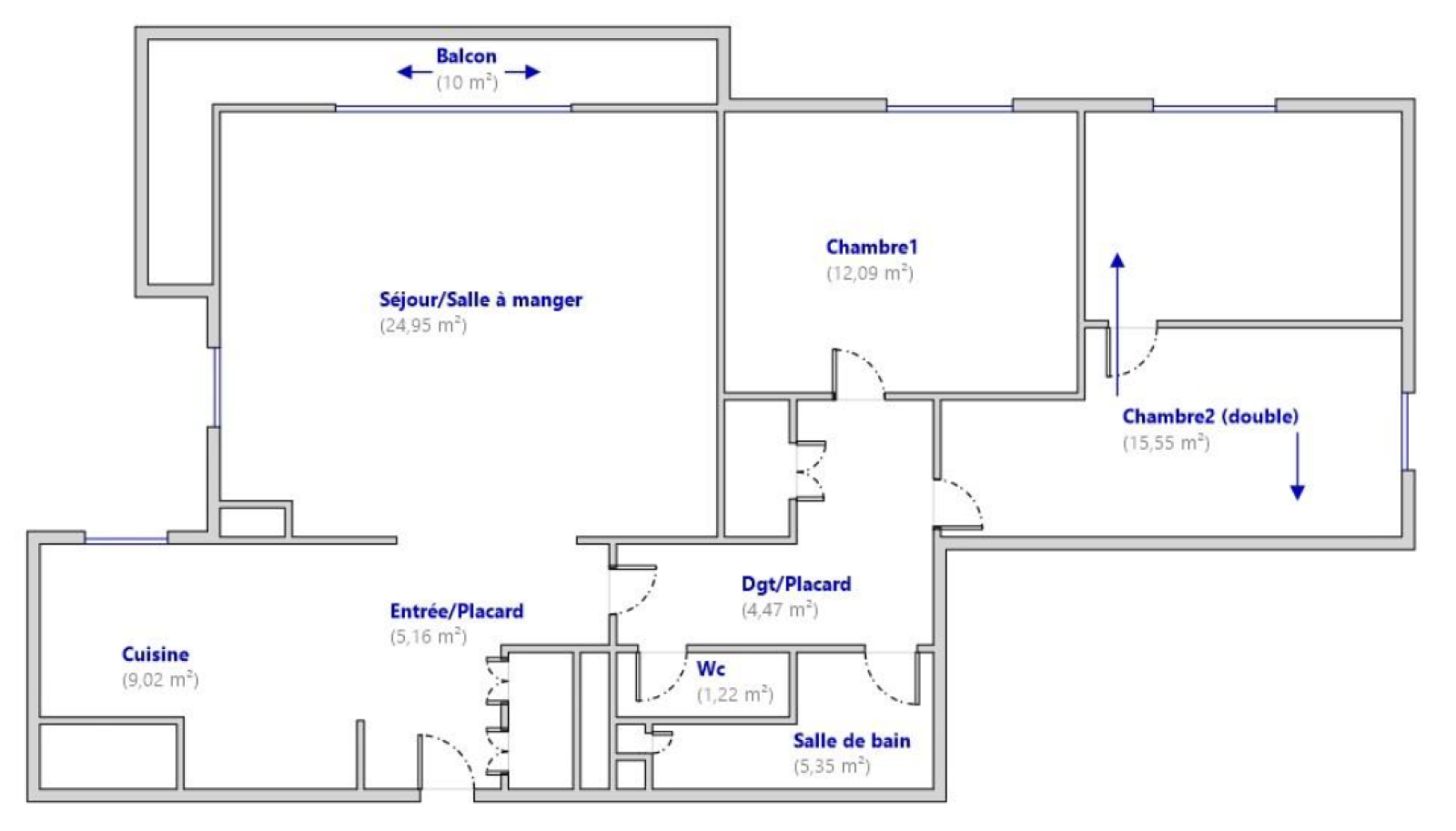 Surface utile : 87,81 m² (Carrez + Balcon)