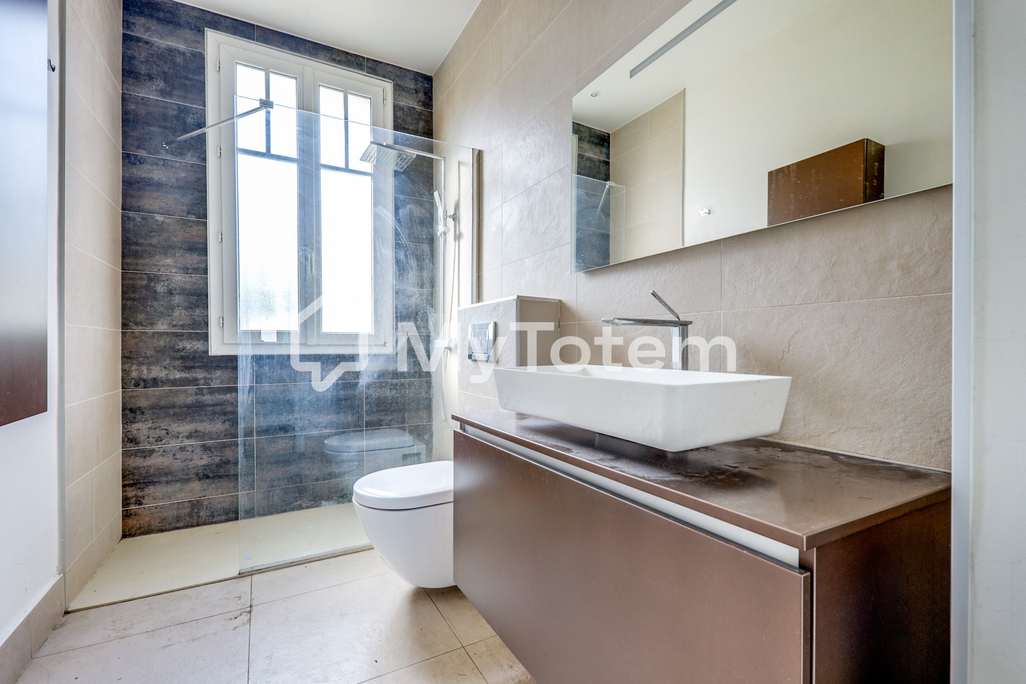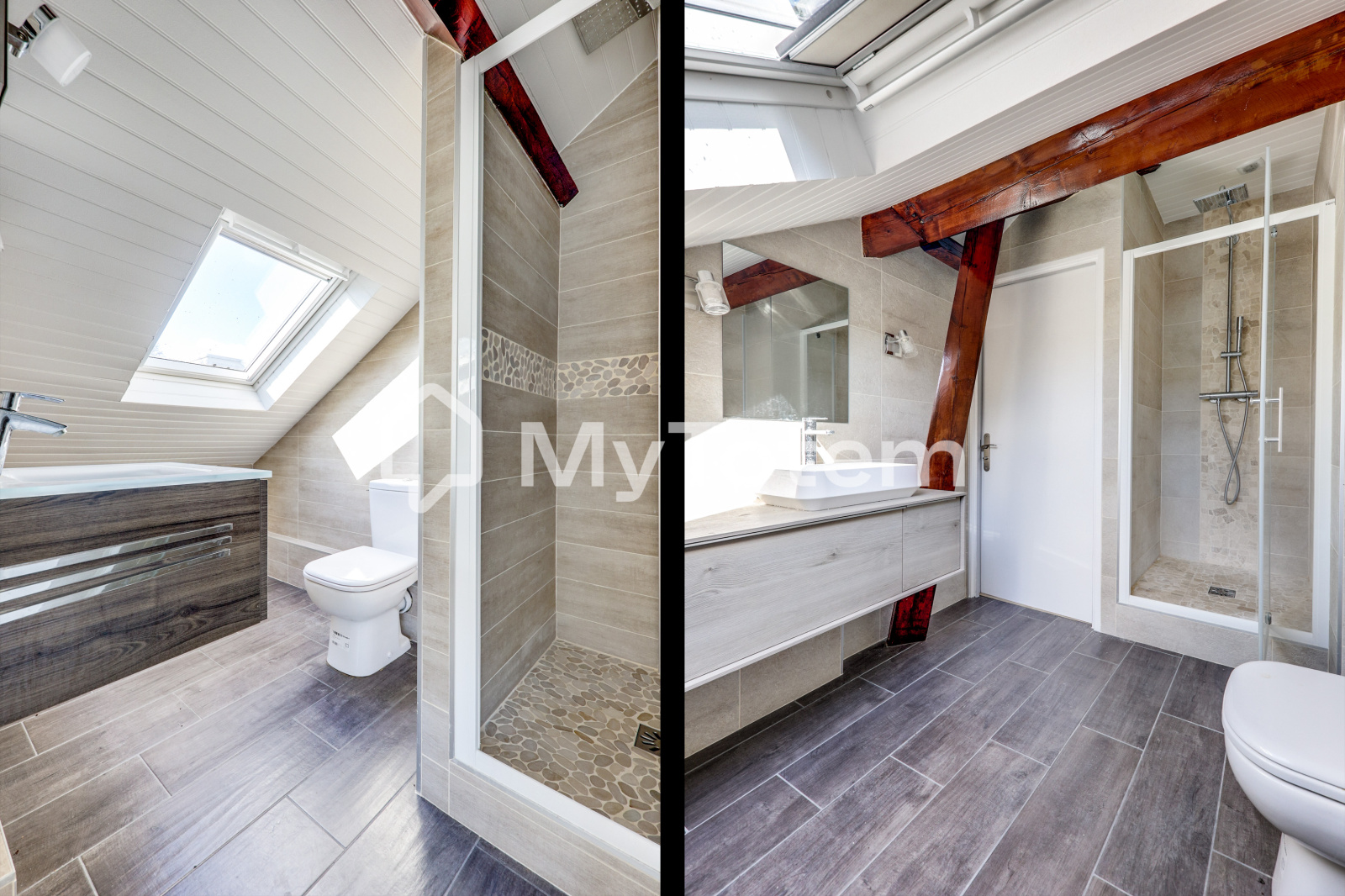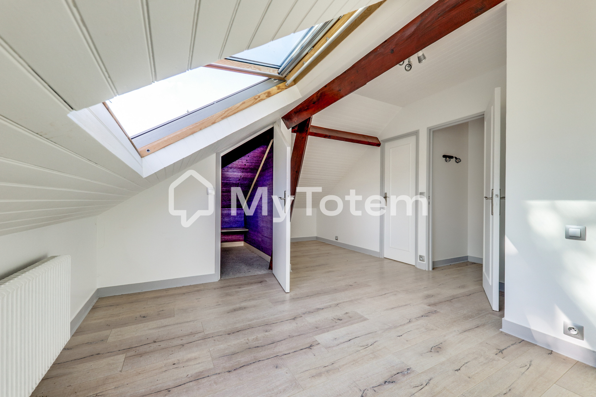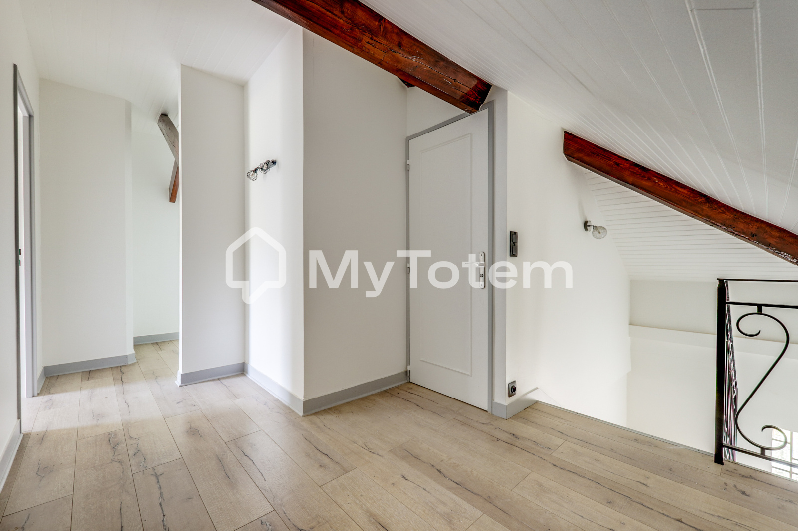 À l’étage : deux grandes chambres, deux salles de bains avec WC, et plusieurs espaces de rangement.