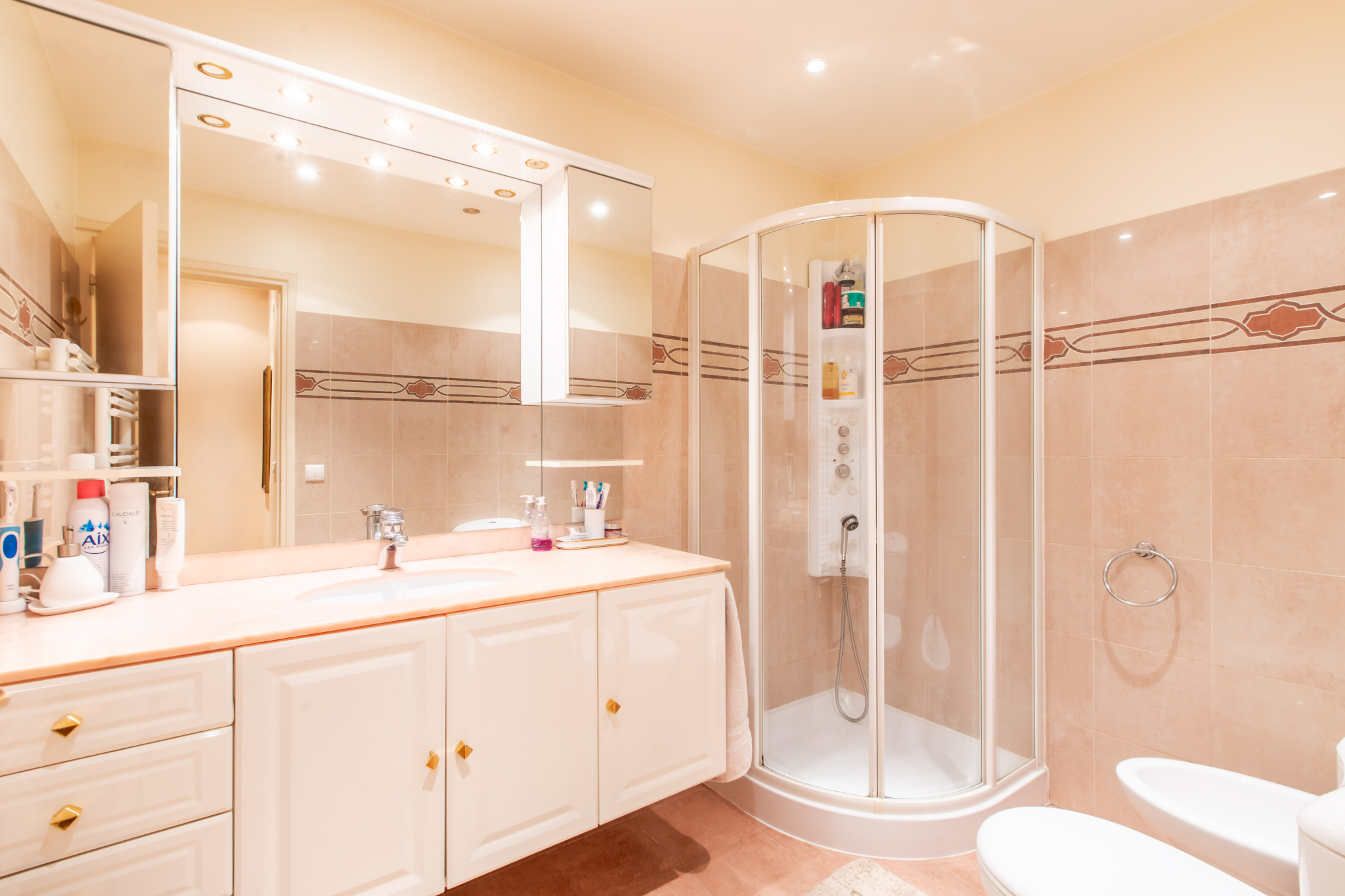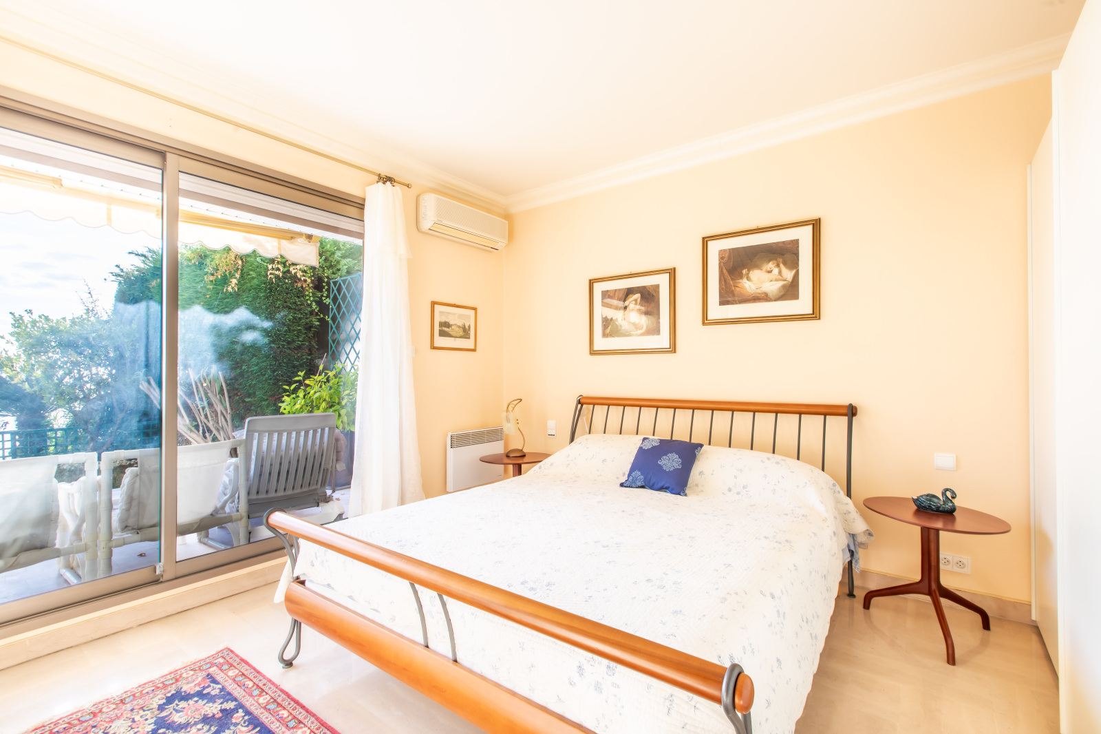 L'appartement, se compose d'une entrée, d'un séjour avec cuisine américaine ouvrant sur la terrasse et le jardin, orientés sud avec des vues dégagées sur la mer, de deux chambres et de deux salles d'eau et d'un wc séparé.