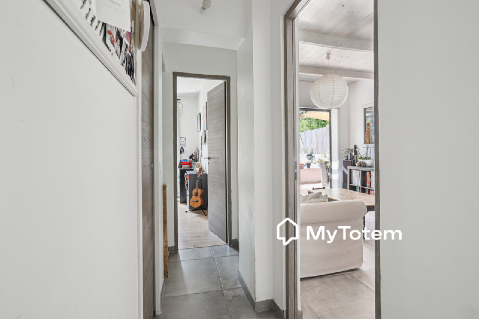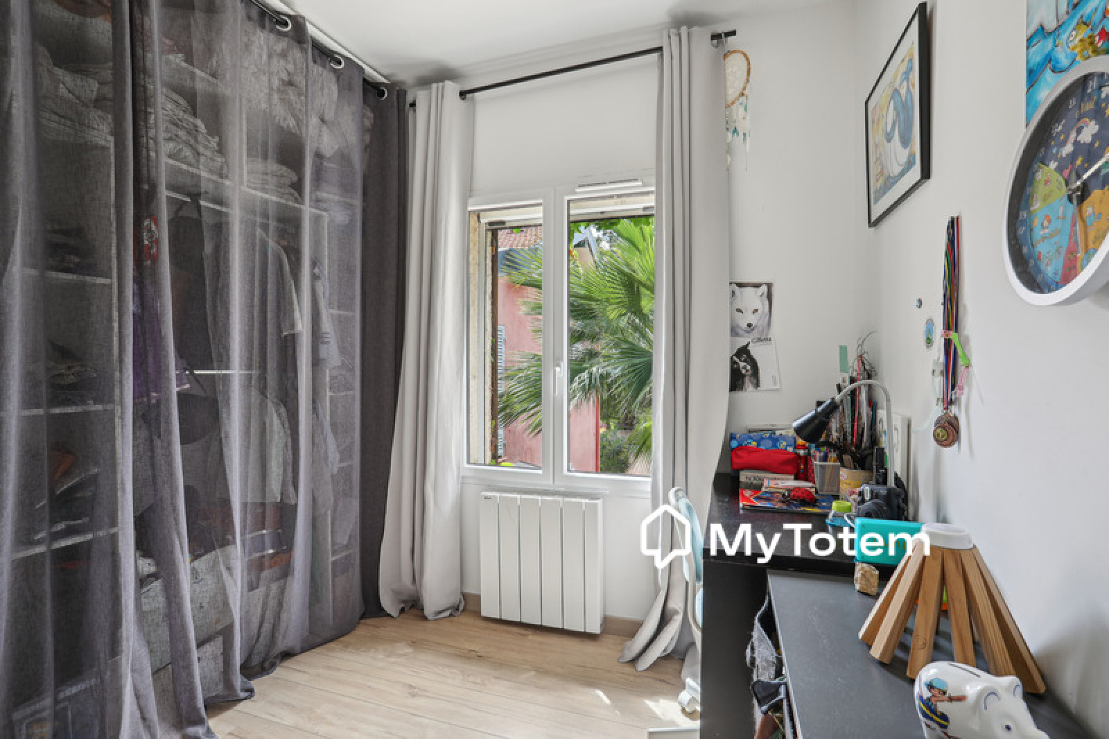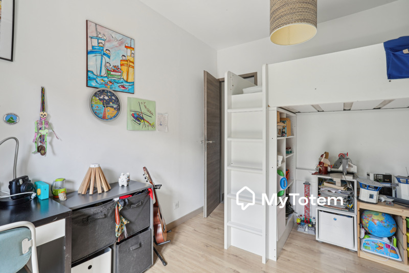 La maison est composée au niveau principal, d'un séjour, d'une cuisine ouverte équipée, d'une buanderie, de 2 chambres enfant et d'une salle de bains avec wc.