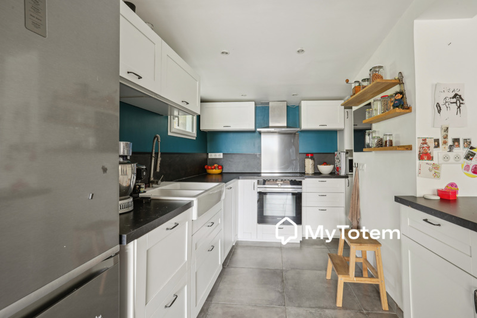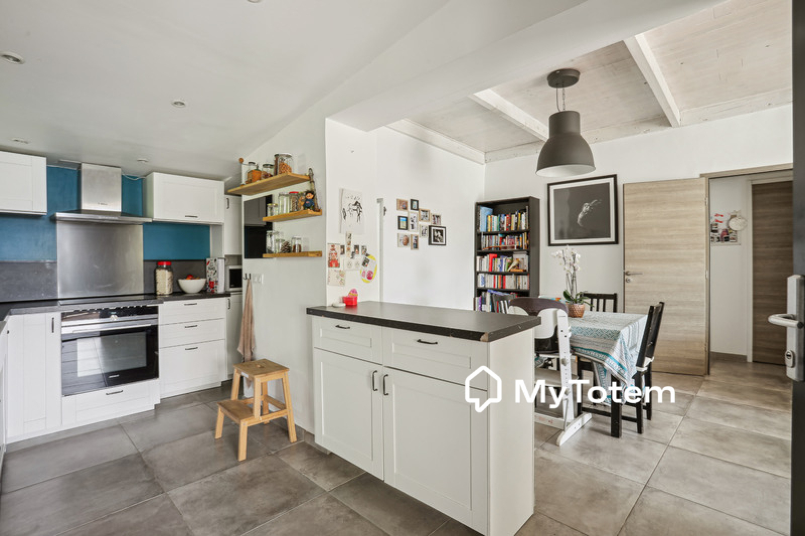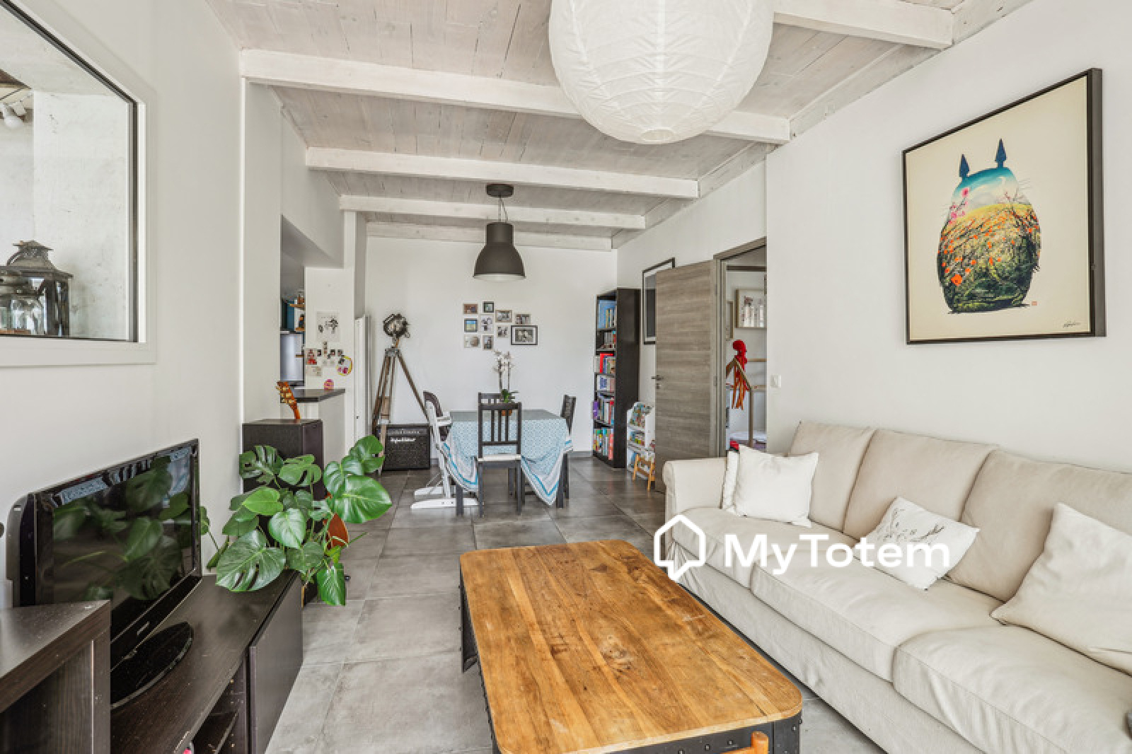 La maison est composée au niveau principal, d'un séjour, d'une cuisine ouverte équipée, d'une buanderie, de 2 chambres enfant et d'une salle de bains avec wc.