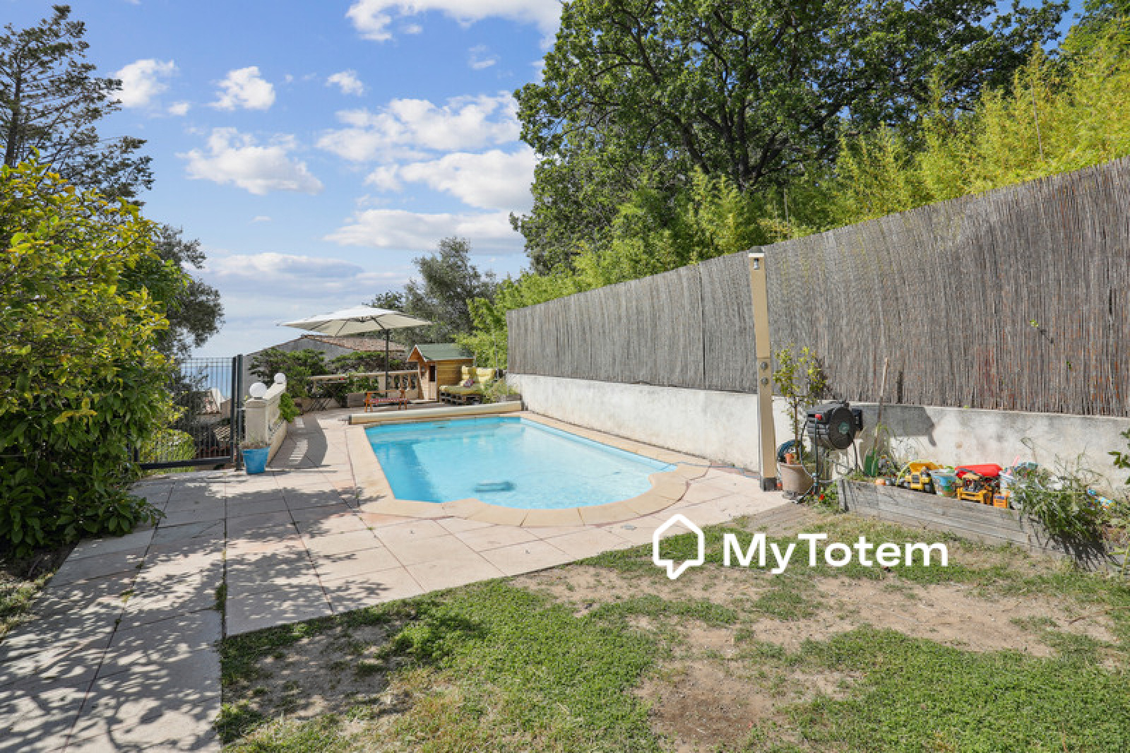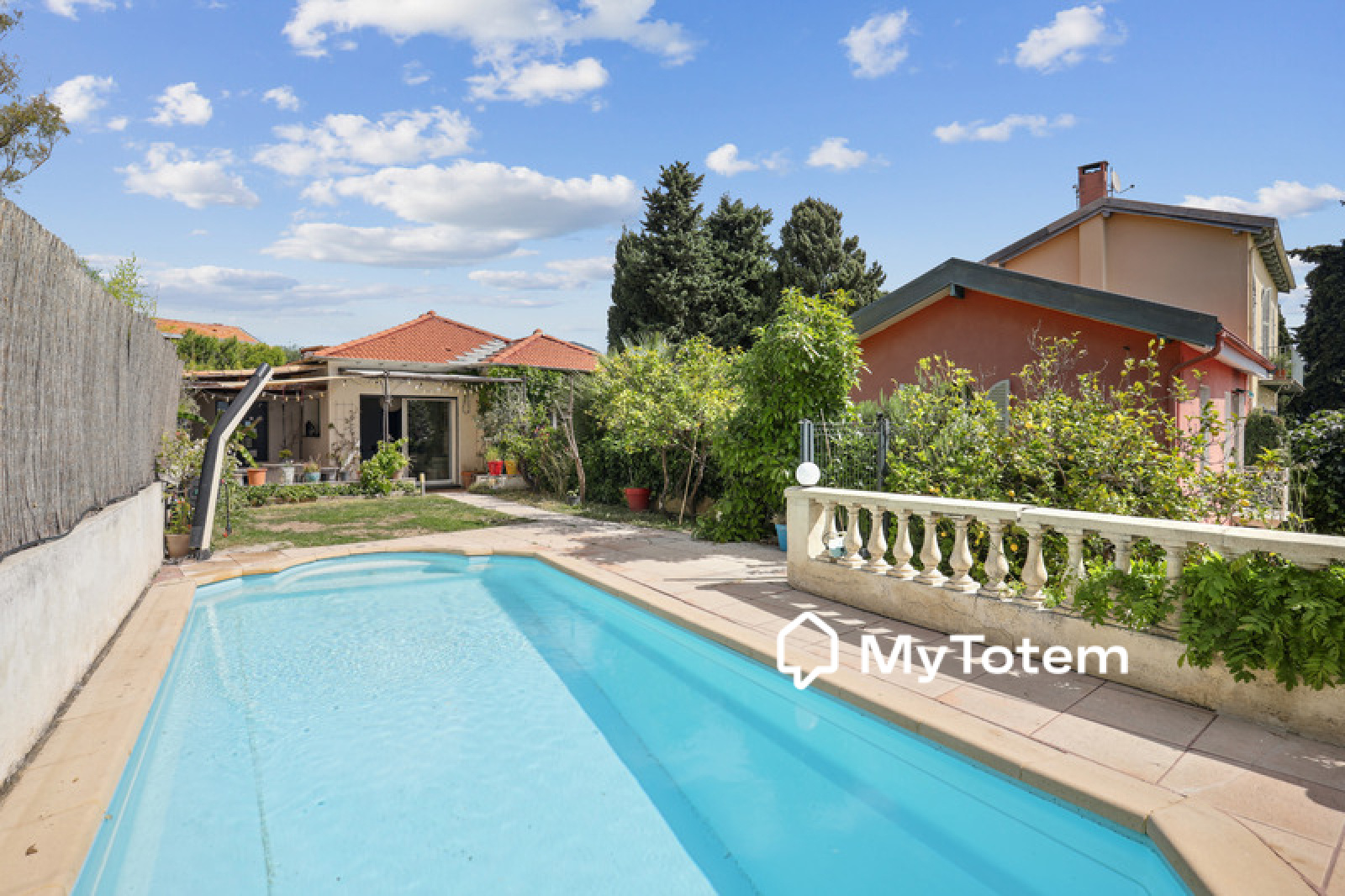 Maison individuelle 4 pièces de 76,44 m² (75 m² "carrez") élevée d'un étage sur rez-de-chaussée sur une parcelle de terrain privative d'une superficie d'environ 320m² offrant piscine et terrasse bien exposée avec vue sur la ville et la mer.